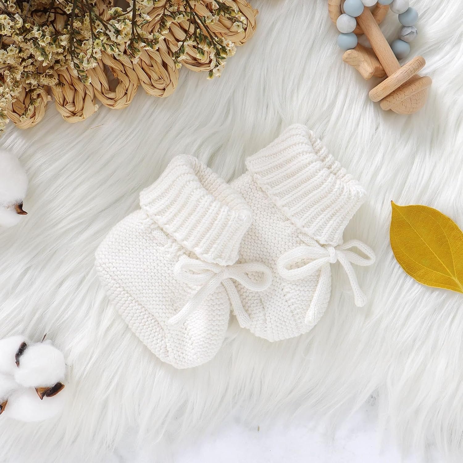 Hadetoto Baby Booties Newborn First Walkers Cozy Shoes Warm Knit Soft Booties for Toddler Infant Boy Girl