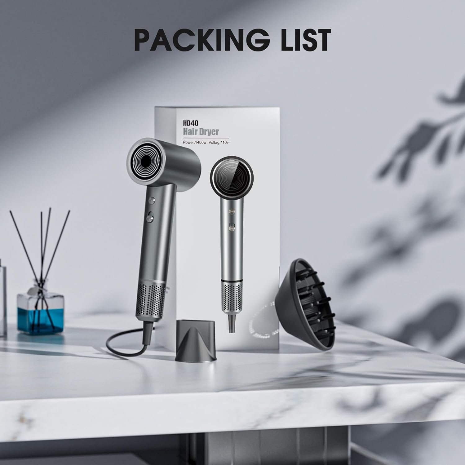 This item equipped with air nozzle and diffuser to fit different hairstyle. The air nozzle featuring more concentrated blow for more accurate hairstyle.Diffuser won’t mess up your hair,it’s perfect for curly hair.360°rotate magnetic design to flexibly cope with the curvature of the hair and firmly connect to body to avoid falling off during use