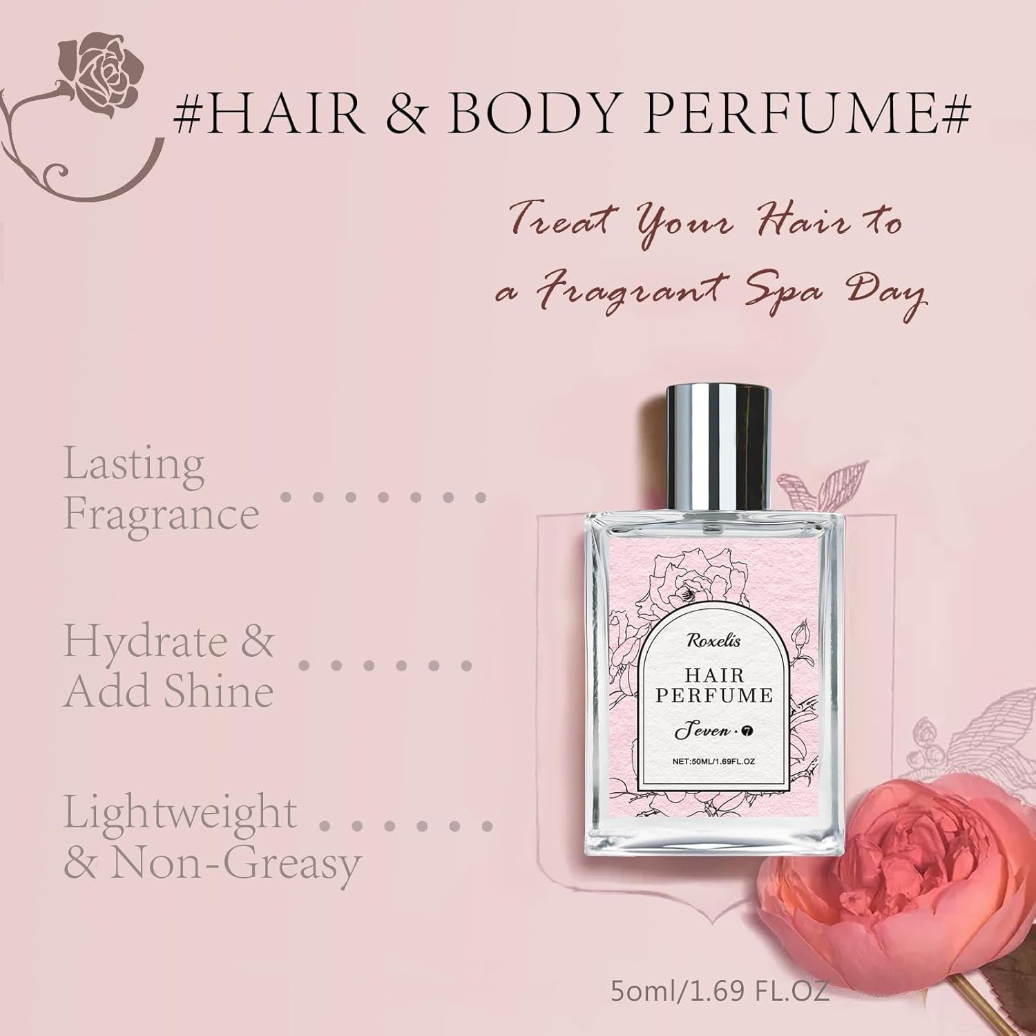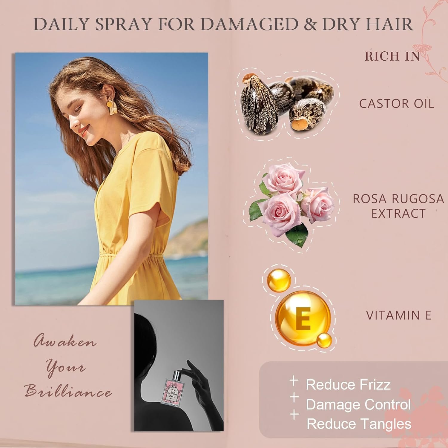 Hair Perfume for Women, Long-Lasting Pheromone Perfume oil Sweet Rose Floral Fragrance, Castor oil & Vitamin E for Nourishing and Hydrating Hair Shine Spray, 1.69 fl.oz