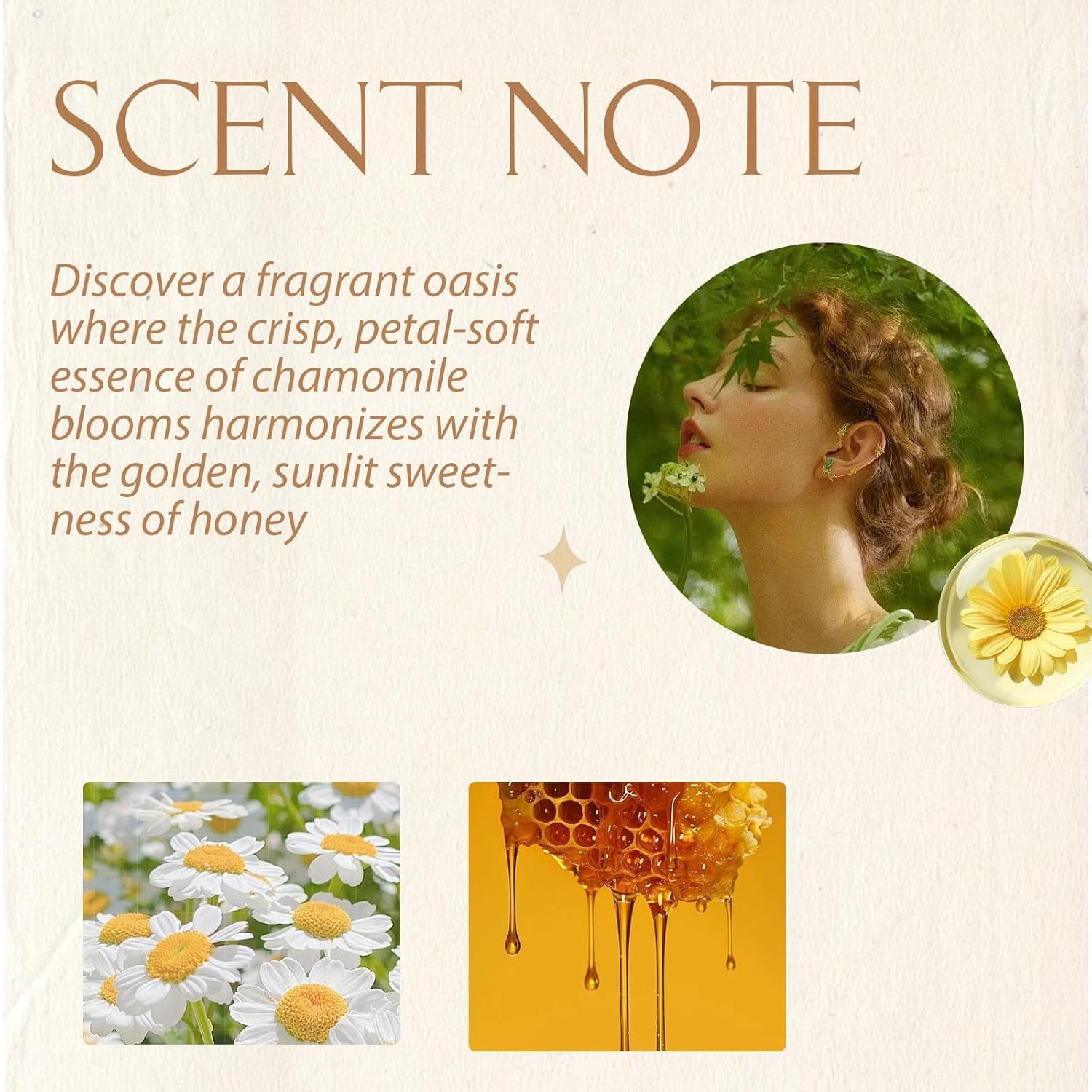 ATTRACTIVE & LONG-LASTING SCENT: Discover a fragrant oasis where the crisp, petal-soft essence of chamomile blooms harmonizes with the golden, sunlit sweetness of honey. Just need two to three sprays a day to sustain its charm all the time