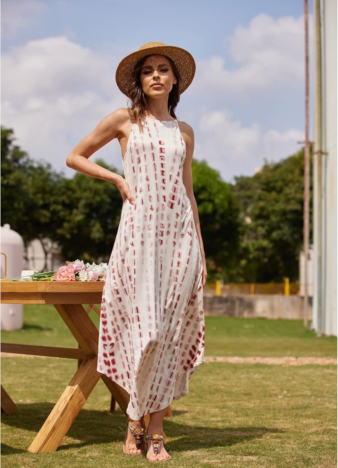 Long Beach Vacation Dress –Comfortable material, soft and breathable ; Sexy Long Dress for Beach Party; Tank Style With Racerback Design