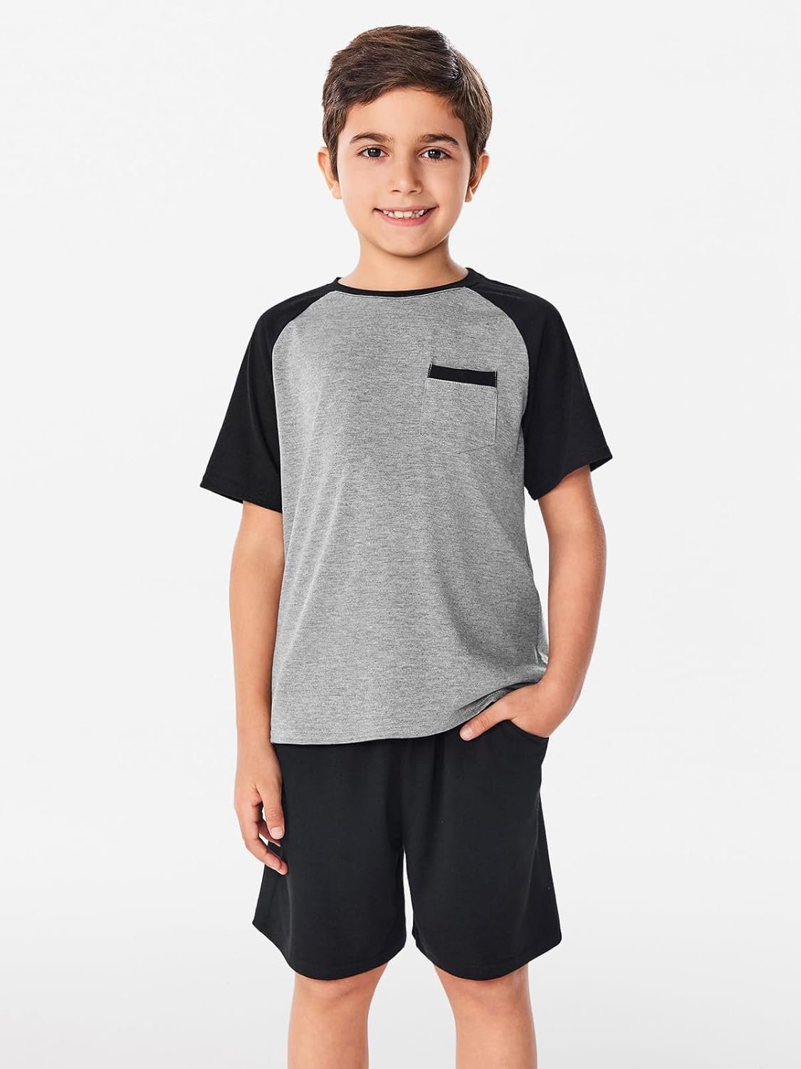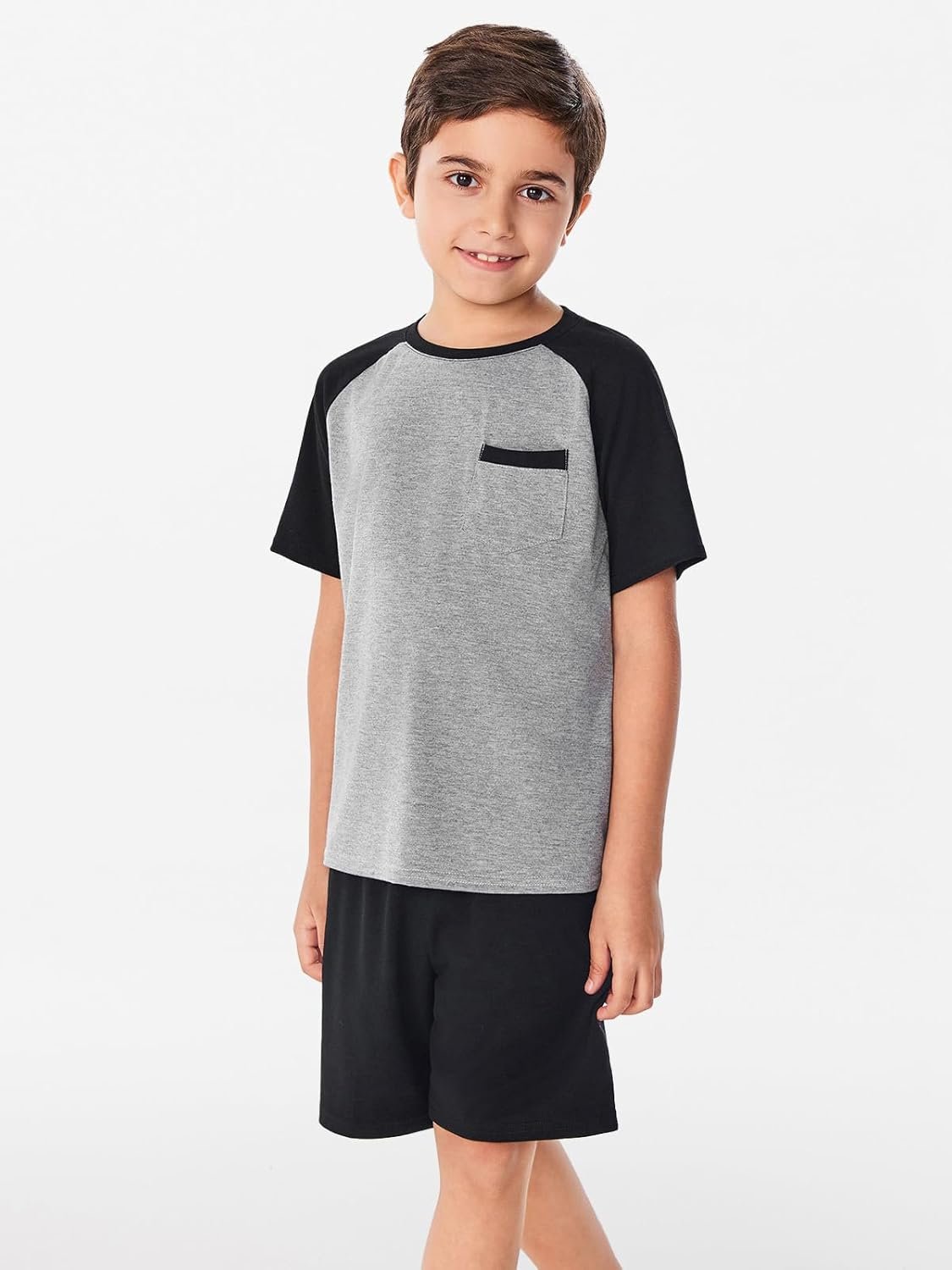 Haloumoning Boys Active Short Sets Short Sleeve Raglan T Shirt Tops and Shorts Kids 2 Piece Summer Outfits 4-14 Years