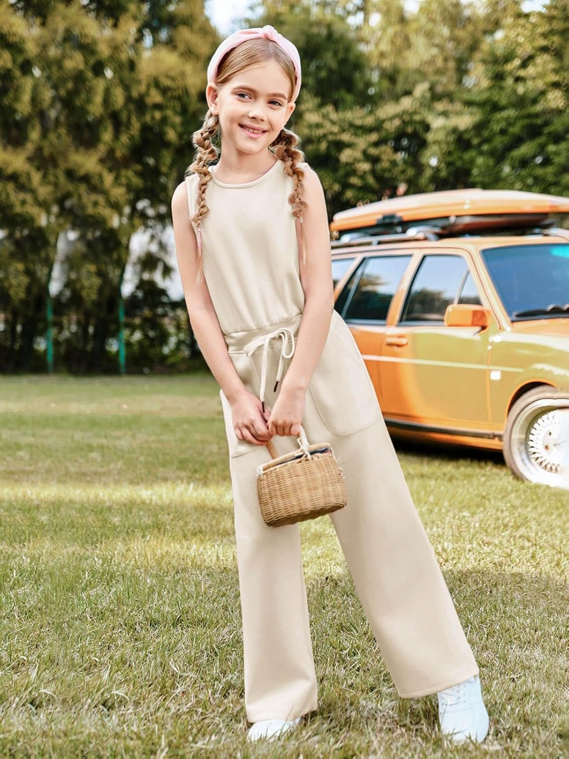 Haloumoning Girl’s Jumpsuits Sleeveless Round Neck Wide Leg One Piece Rompers Little Kid Big Kids