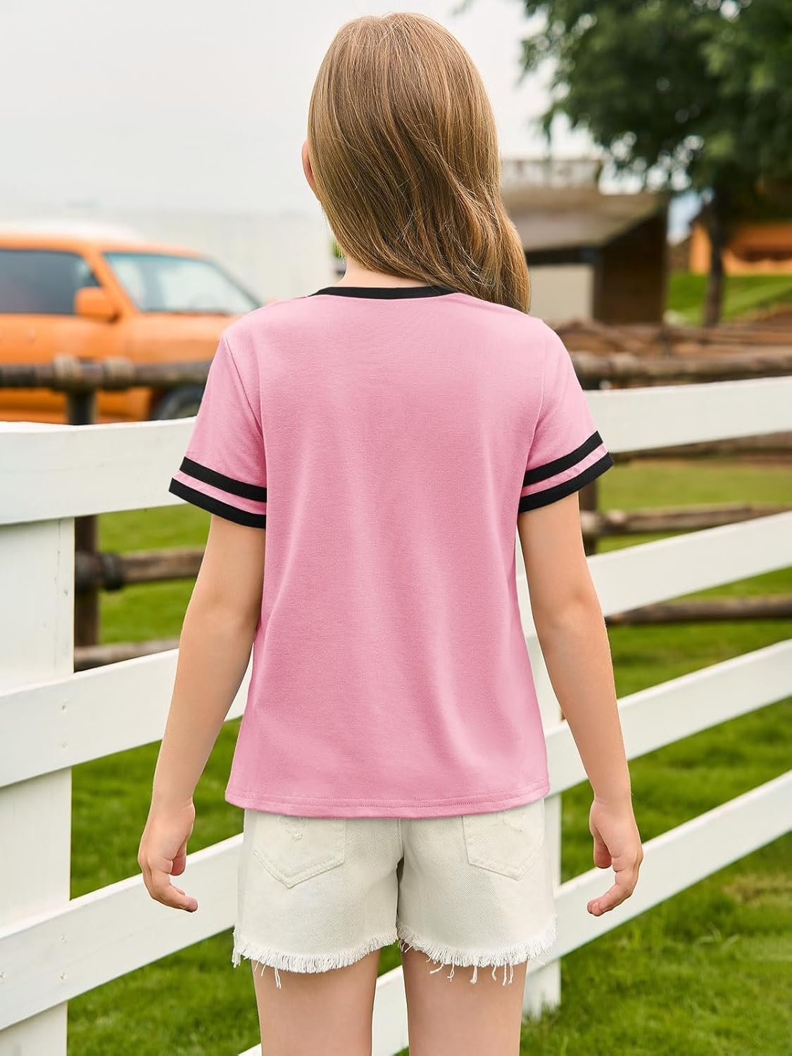Haloumoning Girls Short Sleeve T Shirts Kids Summer Crewneck Color Block Tops Fashion Tees 5-14 Years