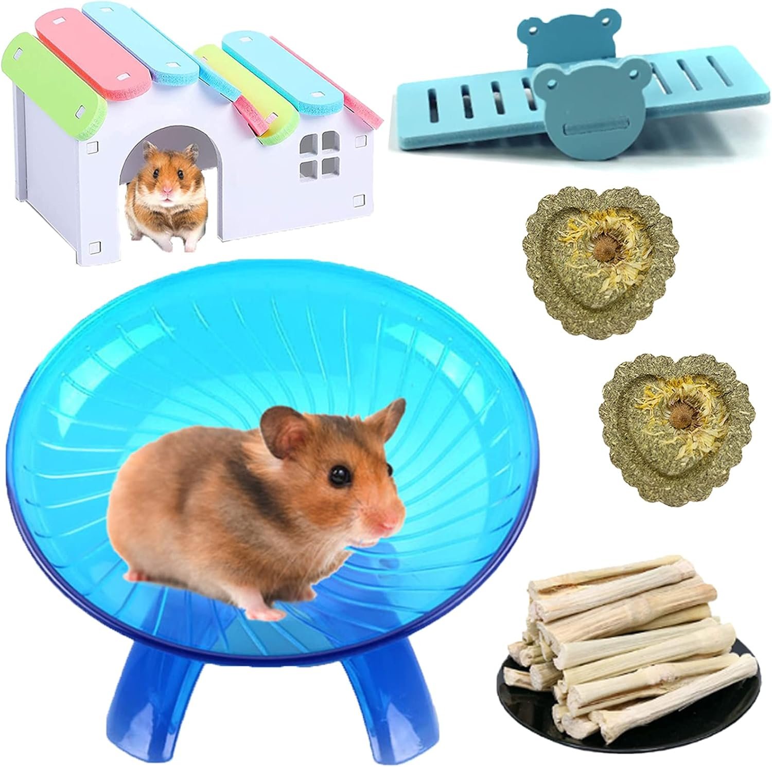 Hamiledyi Hamsters Silent Running Exercise Wheels and Rainbow House Kit