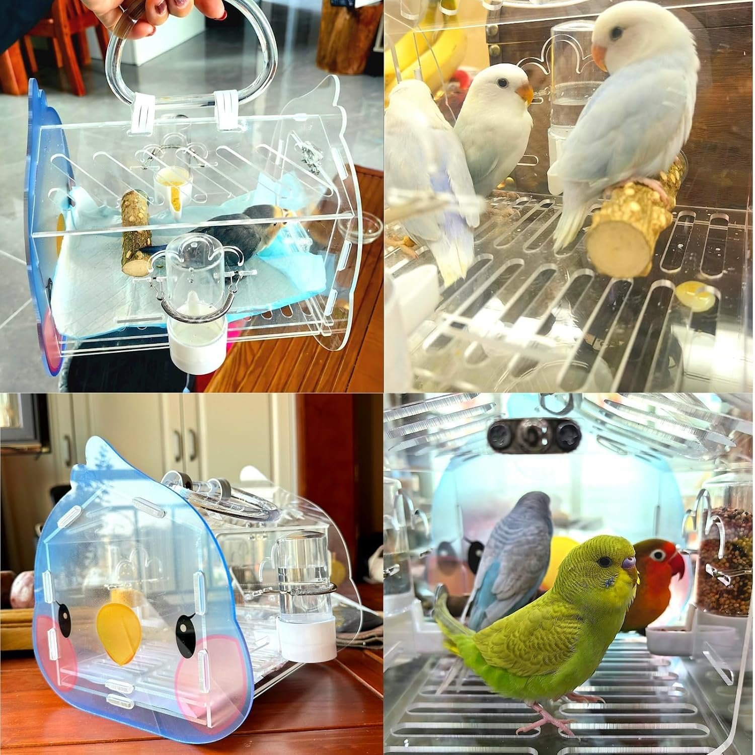 【Fully Transparent Bird Carrier】Bird travel carriers are made of highly transparent acrylic material, so remember to remove the protective film on both sides before assembling. Following our installation tutorial, assembly is easy.Take it down when you’re not using it, and it doesn’t take up space.The transparent design allows your birds to enjoy the scenery route in a safe space.