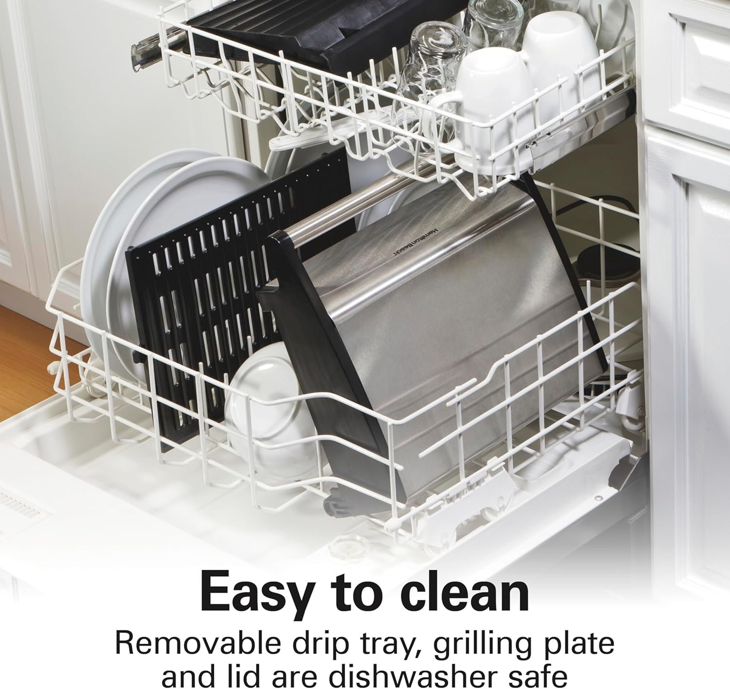 Easy to clean: Indoor grill hood, plate, and extra-large drip tray are all removable and dishwasher safe