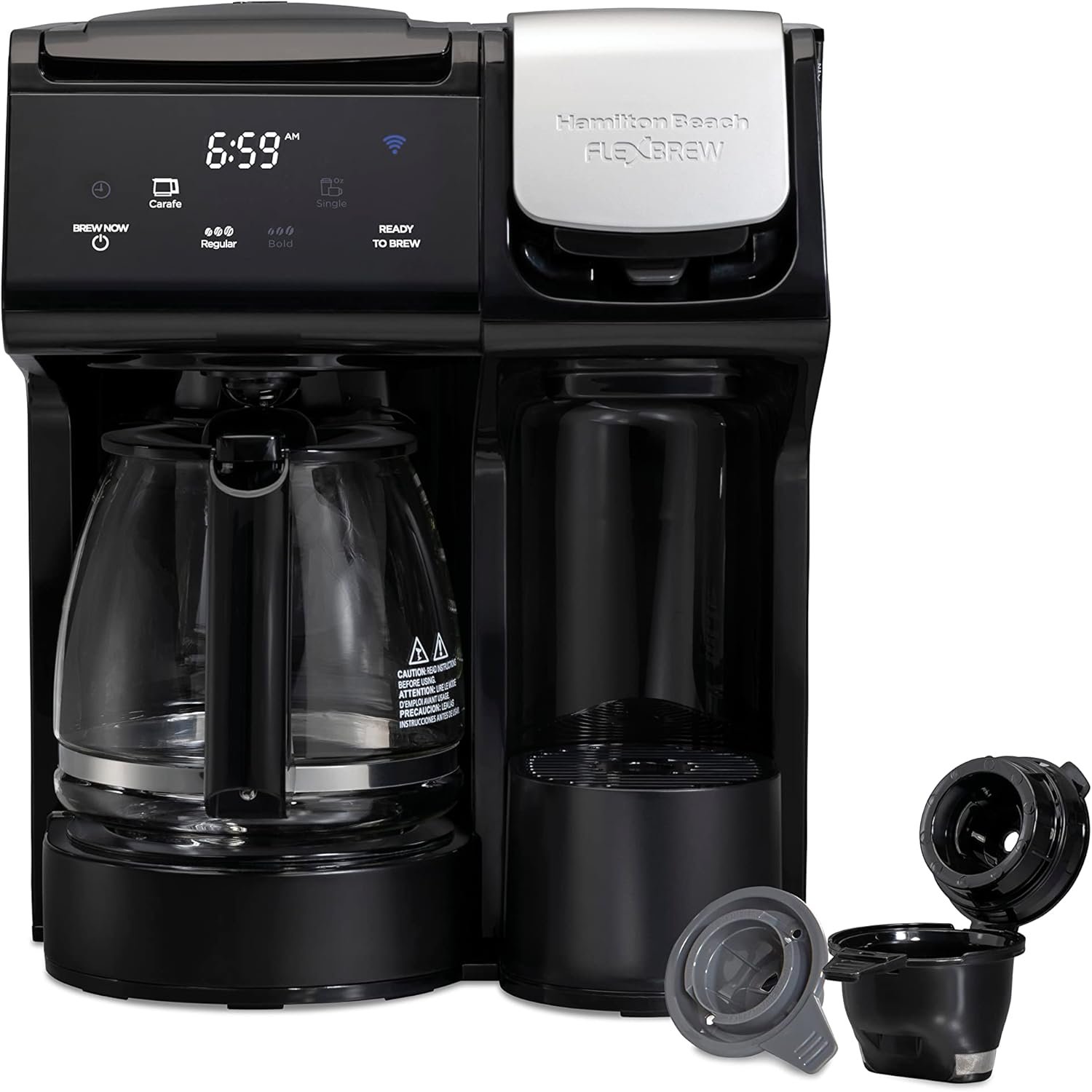 Hamilton Beach FlexBrew Trio 2-Way Coffee Maker, Compatible with K-Cup Pods or Grounds, Combination Single Serve & Full 12c Carafe, Removable Reservoir, Fast Brewing, Works with Alexa, Black (49911)