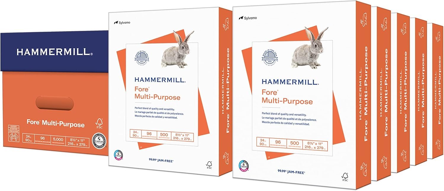 Hammermill Printer Paper, Fore Multipurpose 24 lb Copy Paper, 8.5 x 11 – 10 Ream (5,000 Sheets) – 96 Bright, Made in the USA, 103283C