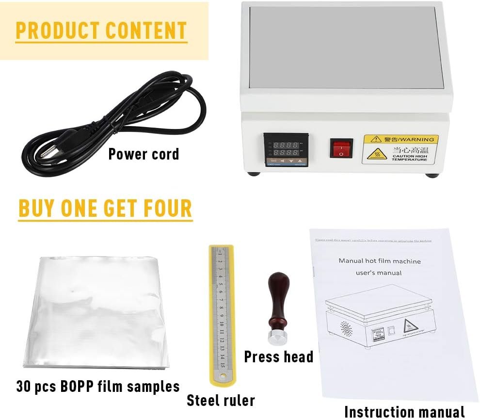 Packing list: Machine×1, Steel ruler×1, Press head×1, BOPP film sample×30