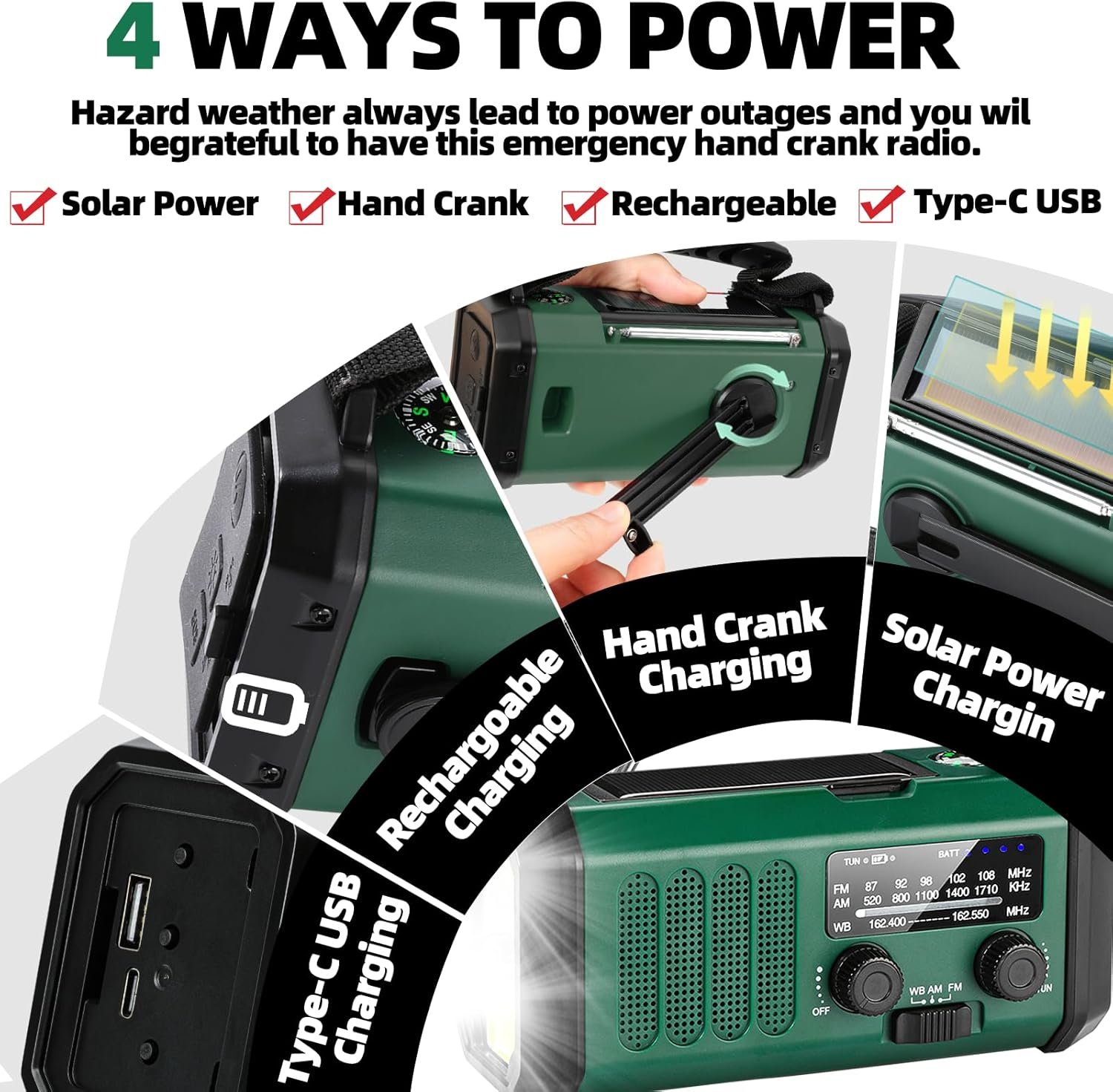 Hand Crank Emergency Radio,37000mWhSolar Powered Hand Crank Portable NOAA AM FM Weather Radio with 3Mode Flashlight and Reading Light,Cell Phone Charger,Home and Emergency Distress Signal