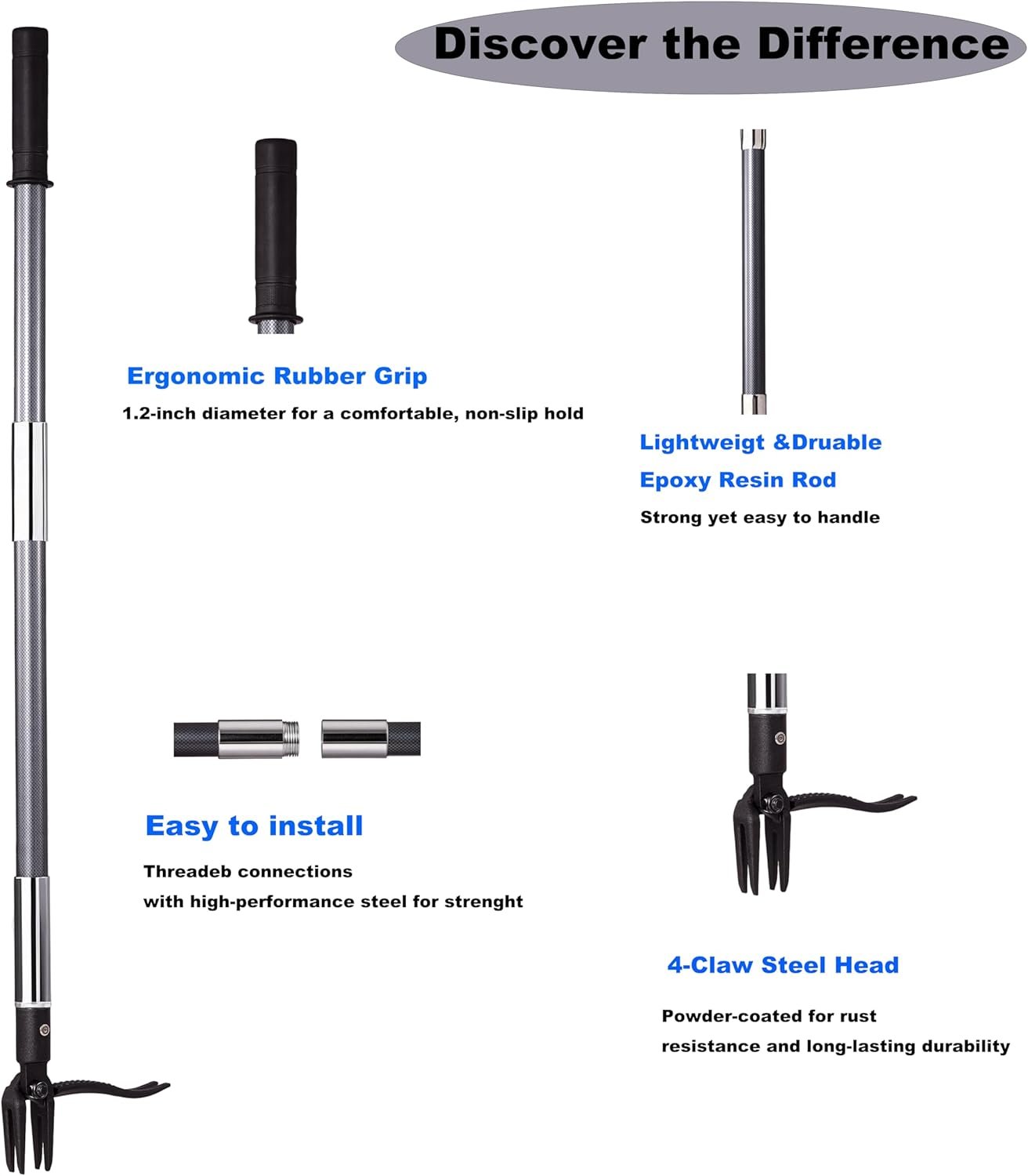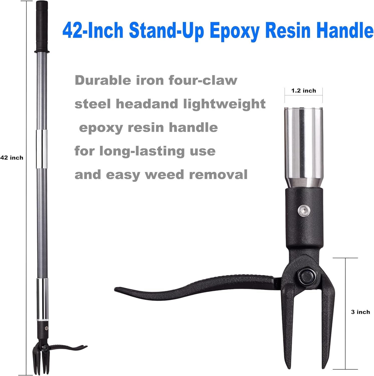 Hand Weed Puller Stand Up Weed Puller Tool with Epoxy Resin Long Handle 4-Claw Steel Head,2-Section Design Sturdy Garden Tools-Easily Remove Weeds Without Bending, Pulling,or Kneeling