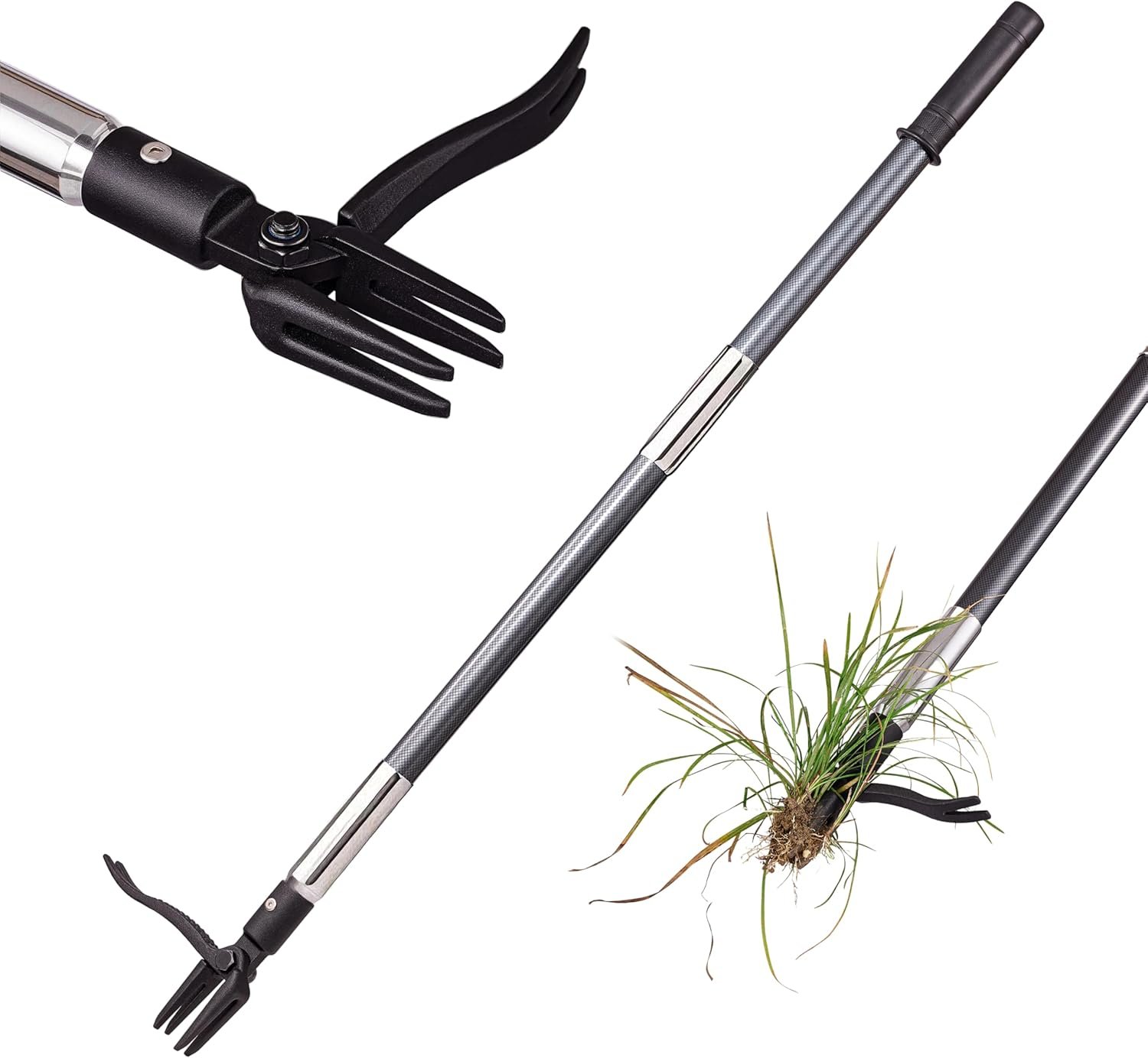 Lightweight & Eco-Friendly Design:Crafted with a lightweight epoxy resin shaft, this weed picker tool eliminates the need for wood, reducing environmental impact without sacrificing strength. Built to handle heavy-duty tasks, it resists bending or breaking even under pressure. The ergonomic anti-slip grip at the top ensures comfortable control during long gardening sessions, making it ideal for tackling stubborn weeds effortlessly