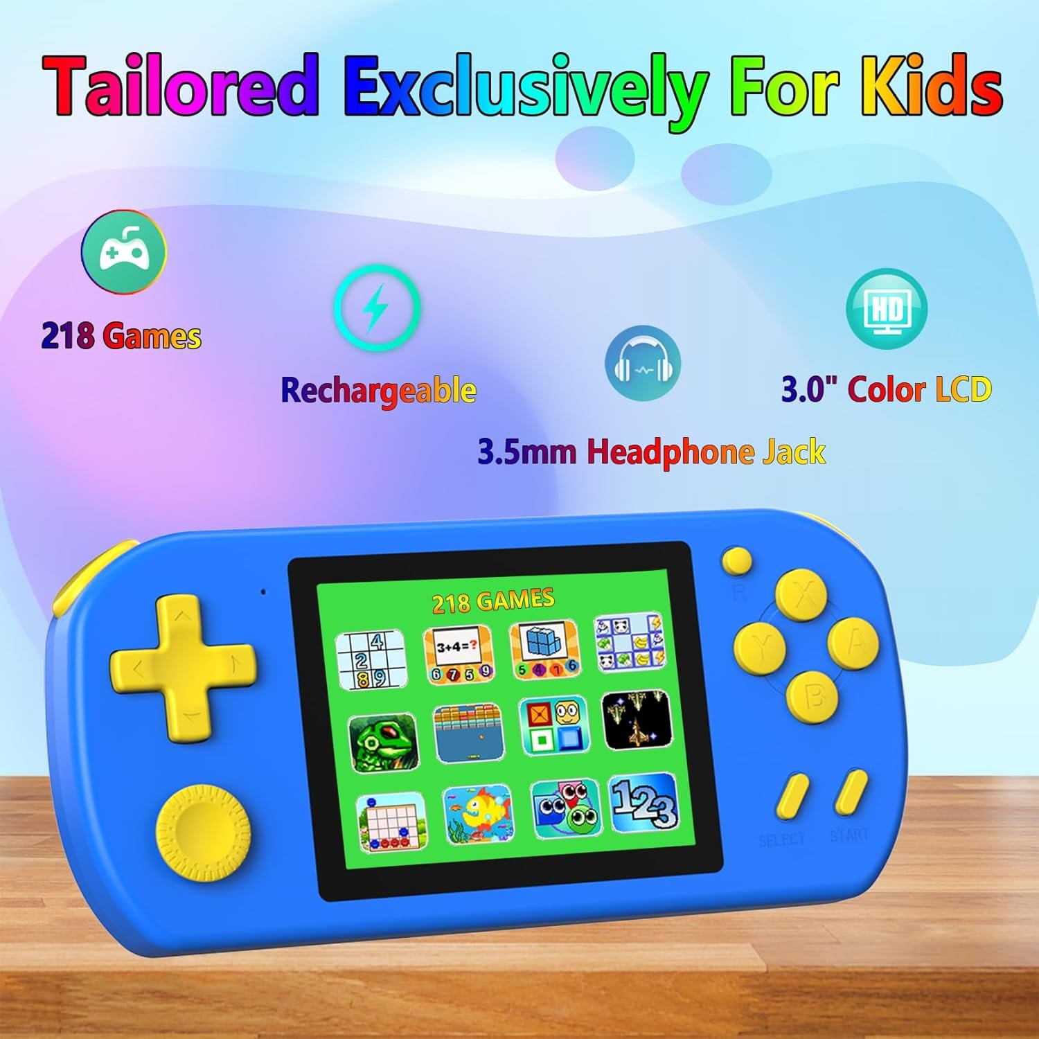 Handheld Games for Kids Built-in 218 Video Games, Portable Kids Travel Toys for Ages 4-13 with Rechargeable Battery 3.0″ HD Screen, Mini Gaming Player Birthday Gifts for Boys Girls (Blue)