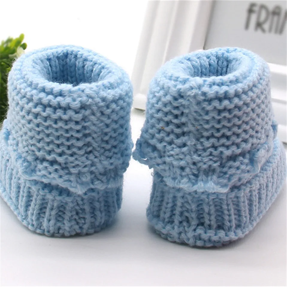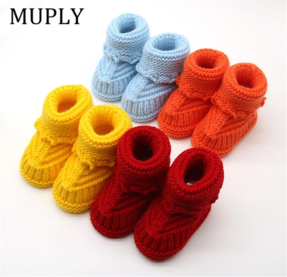 Handmade Newborn Baby Boys Girls Crib Shoes Infant Boys Girls First Walkers Crochet Knit Winter Warm Booties Toddler Warm Shoes