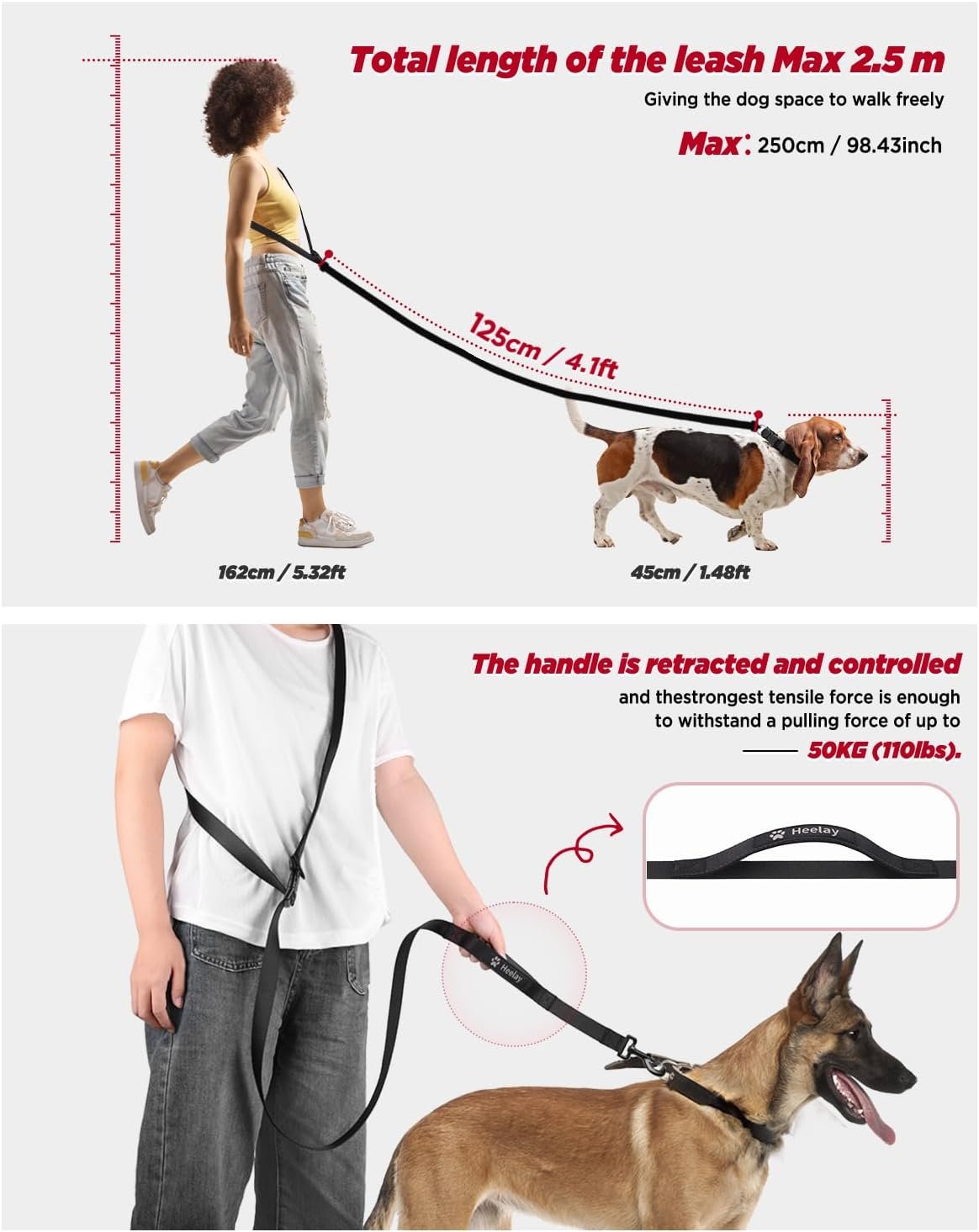 🐕🏃【Hands Free Dog Leash】 Lightweight crossbody leash , just hang the crossbody strap over your shoulder for a hands-free dog walking experience. This belt can also be easily worn around your waist for increased mobility; the perfect hands-free belt for walking, hiking and running for freedom of movement and relaxation.