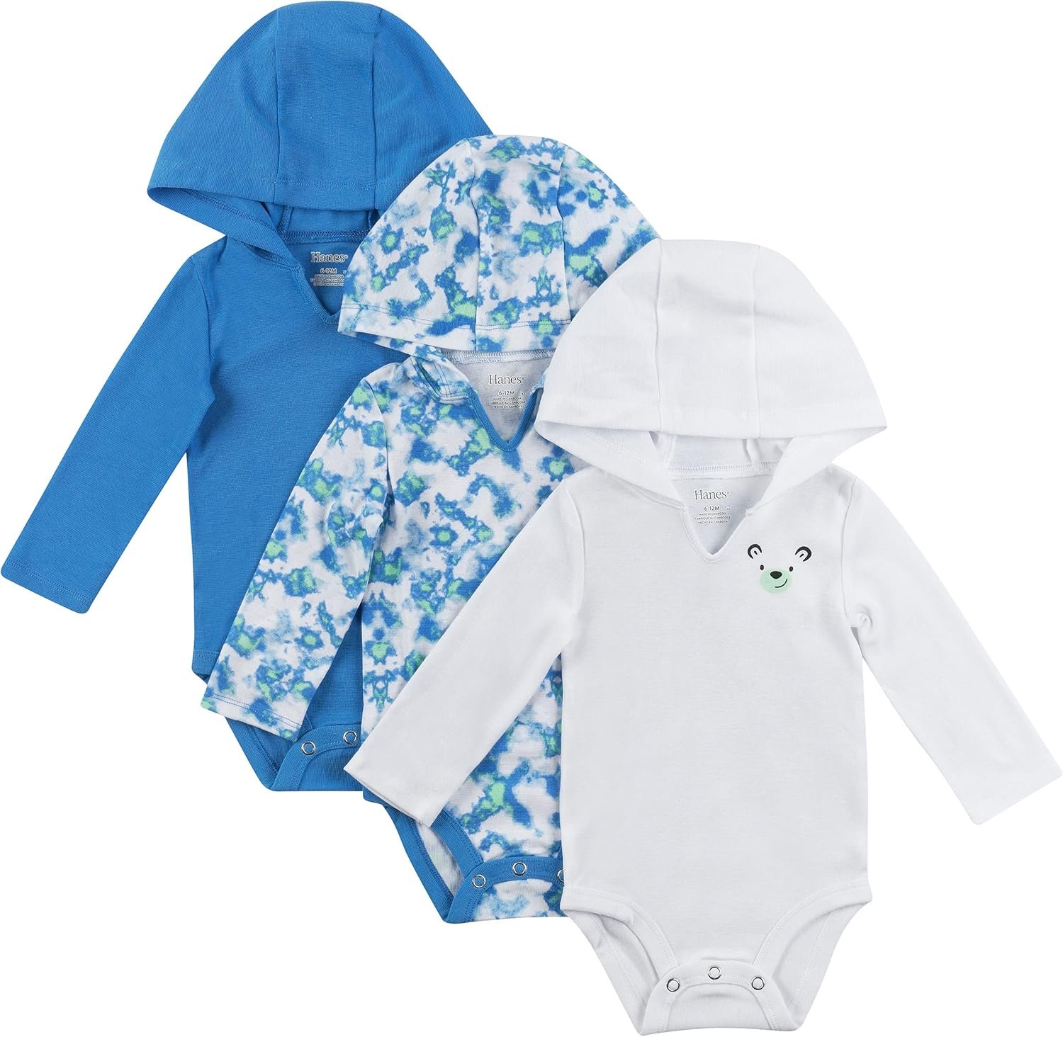 Hanes Baby Long Sleeve Bodysuit, Ultimate Bodysuit Hoodie Boys & Girls, 3-pack
