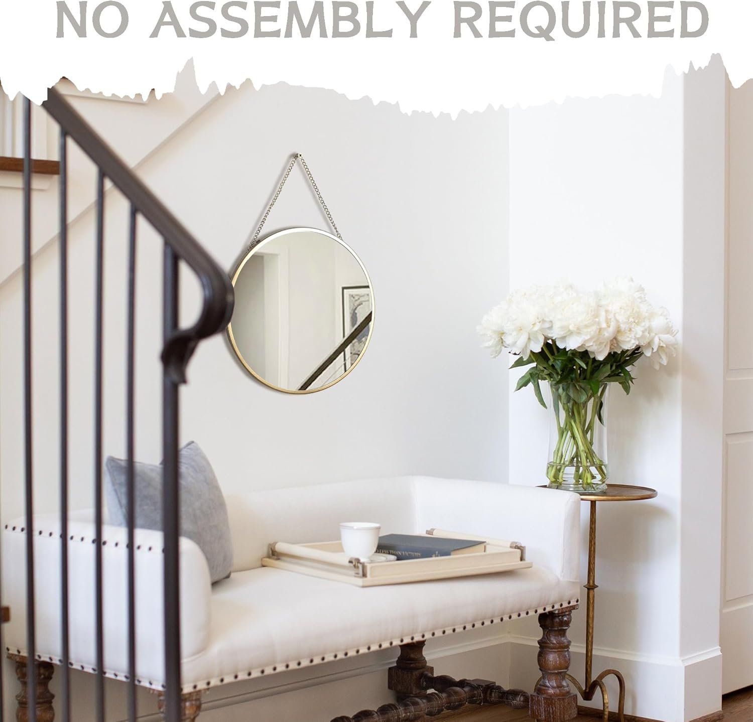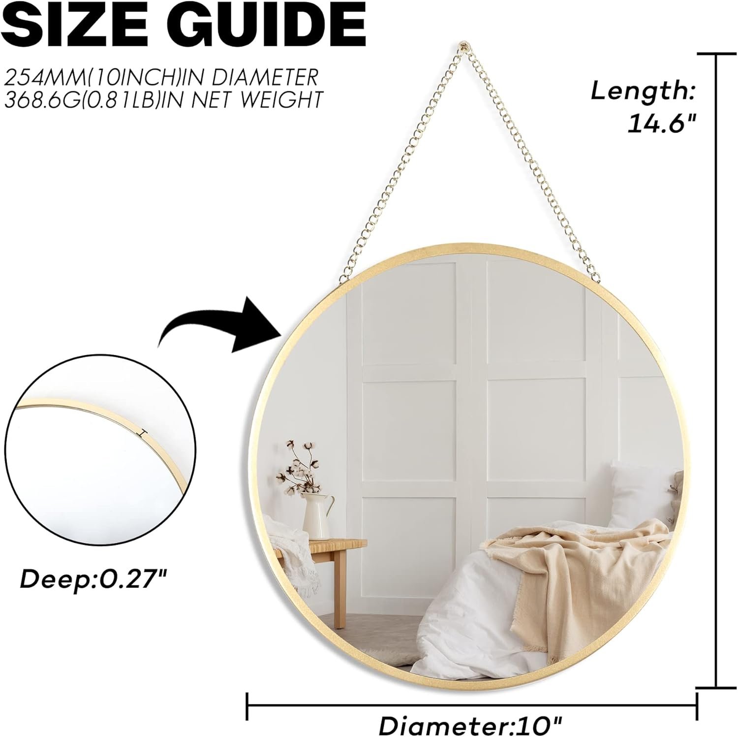 Hanging Circle Mirror Wall Decor Gold Round Mirror with Hanging Chain for Bathroom, Bedroom, Vanity, Living Room, Entryway, 10 Inch X 10 Inch
