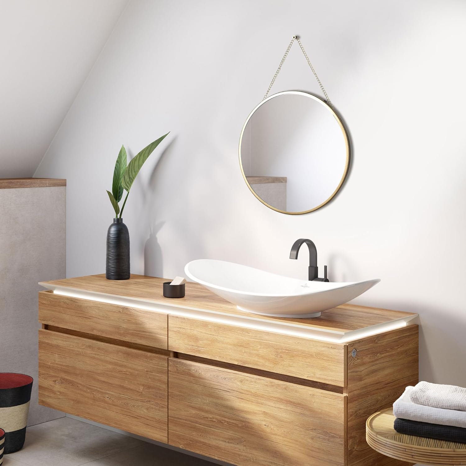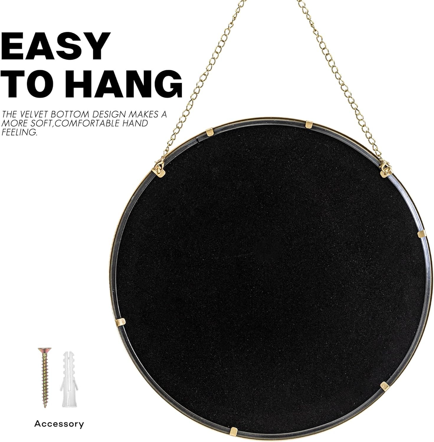 Effortless Installation: The hanging mirror comes with installation accessories and a gold metal chain on the back for secure and stable wall hanging.