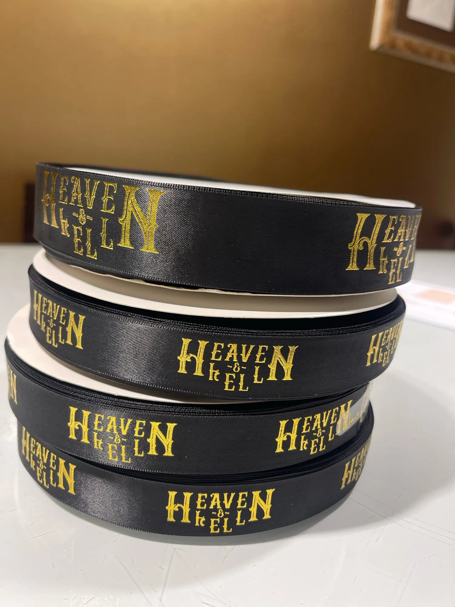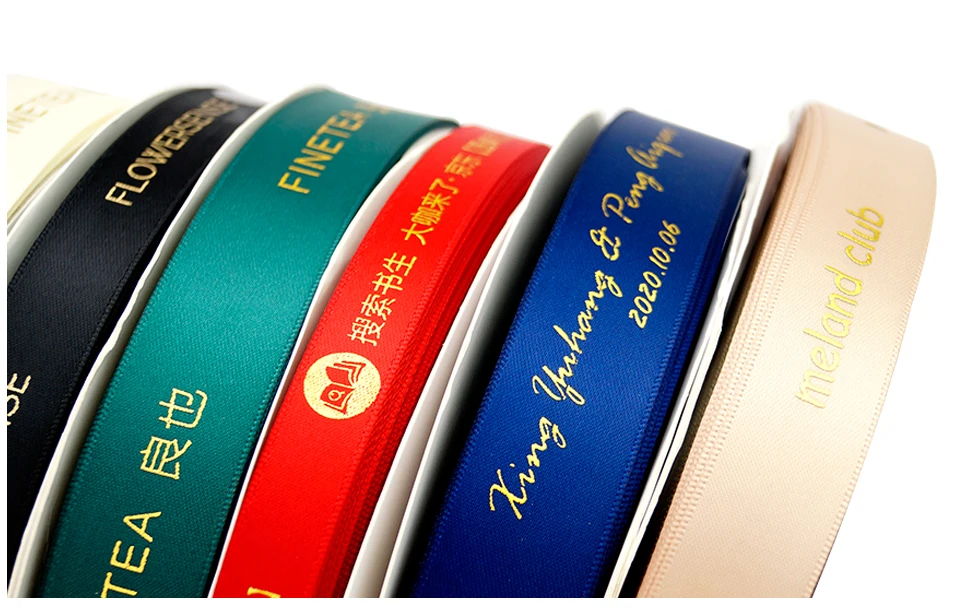18 reviews for HAOSIHUI 10mm-32mm Custom Logo Hot Stamping Foil Printed Satin Polyester Ribbon for Gift Wrapping and Packaging 100 yard/lot