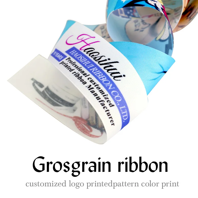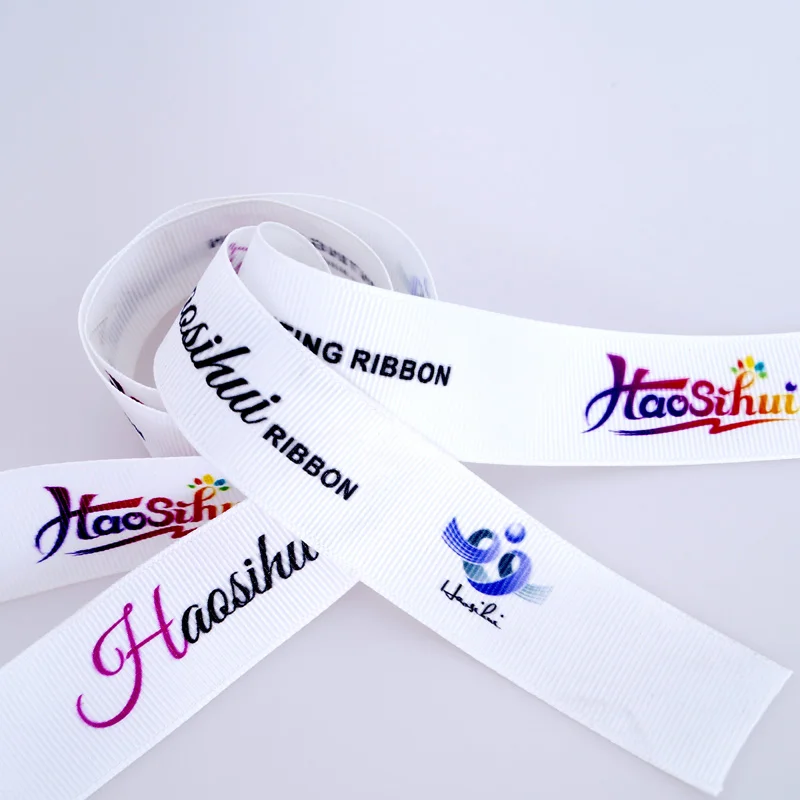 HAOSIHUI Custom Grosgrain Ribbon Printed Single Sided 10~50~100 Yards Polyester Washable Does Not Fade