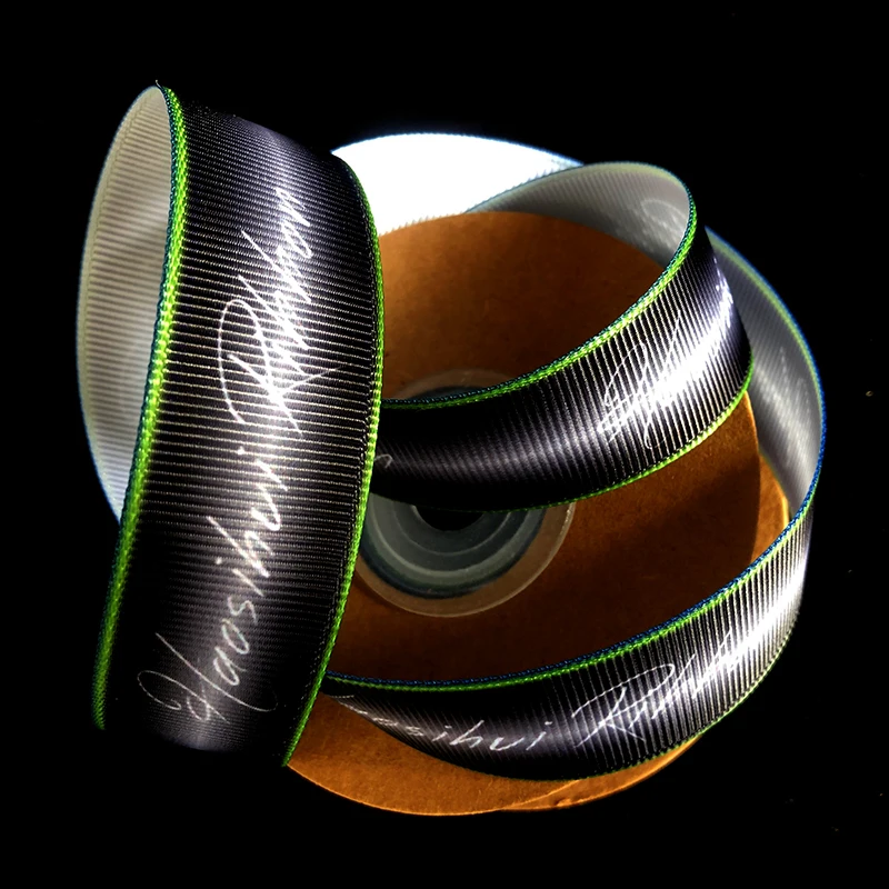 HAOSIHUI Custom Grosgrain Ribbon Printed Single Sided 10~50~100 Yards Polyester Washable Does Not Fade