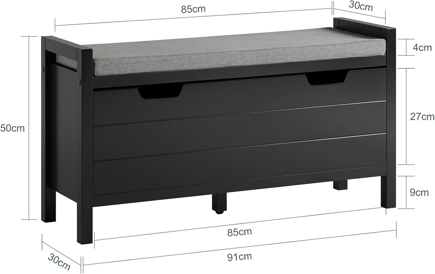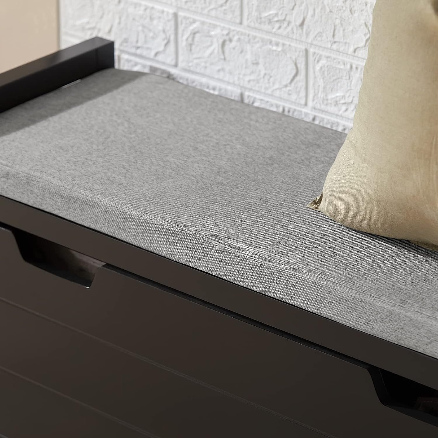 Comfortable seat cushion i[Features of Shoe Storage Bench]: Practical recessed grips on the front not only facilitate quick opening, but also provide good ventilation of the shoes. s removable.