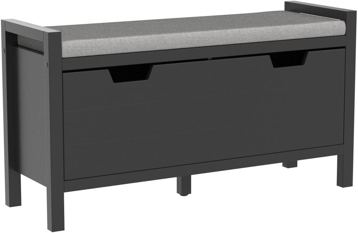 Haotian Small Storage Bench, Shoe Storage Bench with Flip-Down Door and Padded Cushion, Shoe Bench for Entryway, Hallway and Bedroom, Black, FSR97-SCH