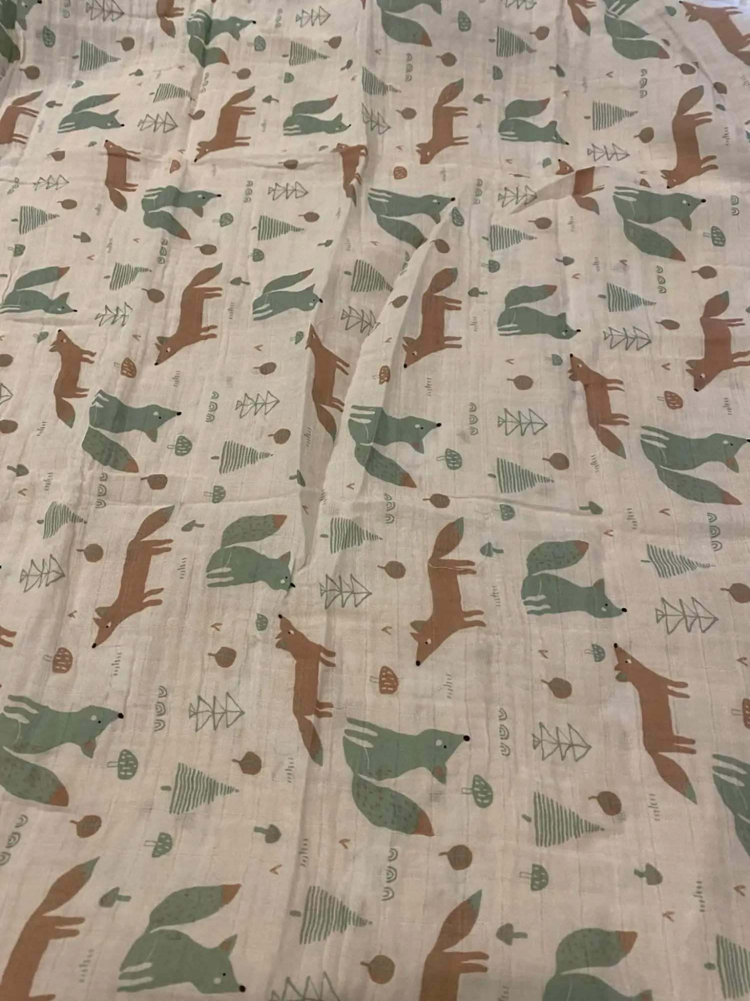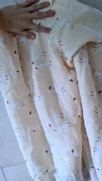 A very soft muslin, I highly recommend it. It arrived ahead of time, the design is the same as the image.