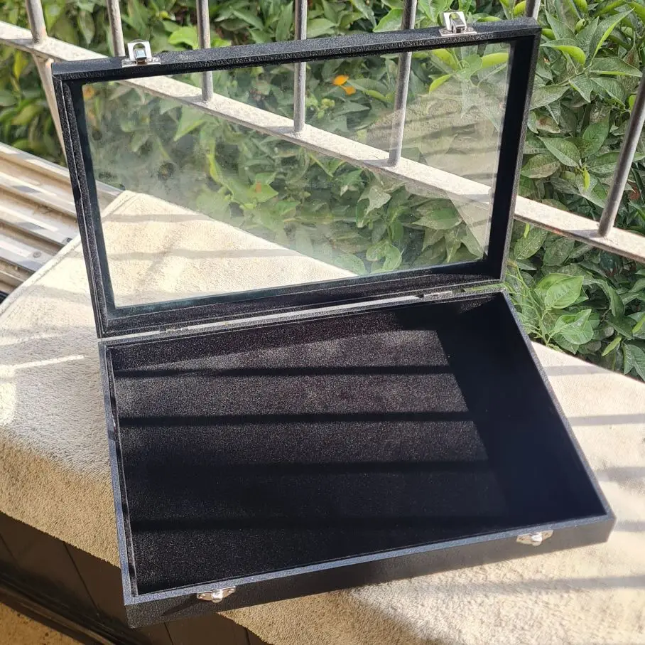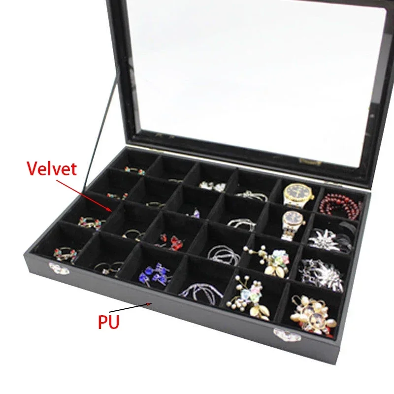13 reviews for Hard Balck PU Jewelry Box With Glass Cover Storage Ring Earring Bracelet Necklace Display Organizer Storage Case Box
