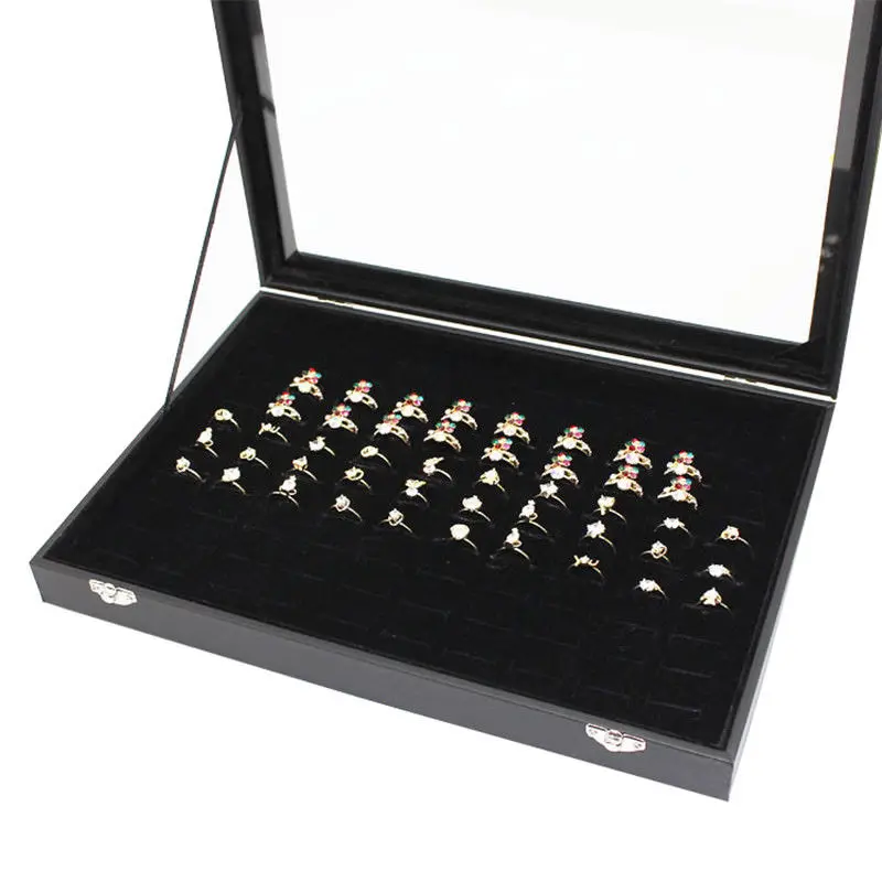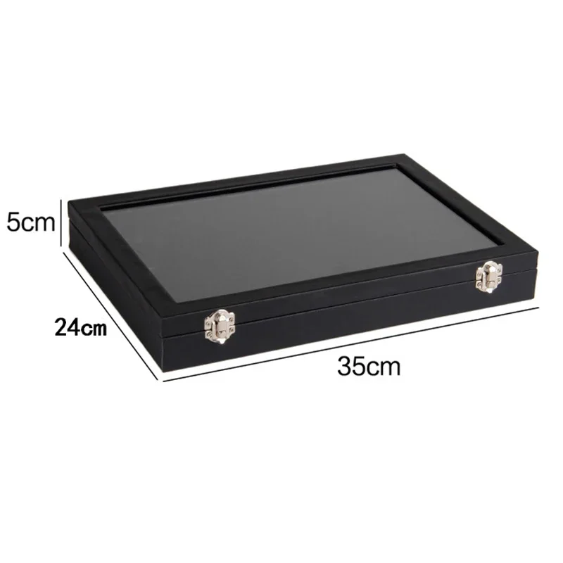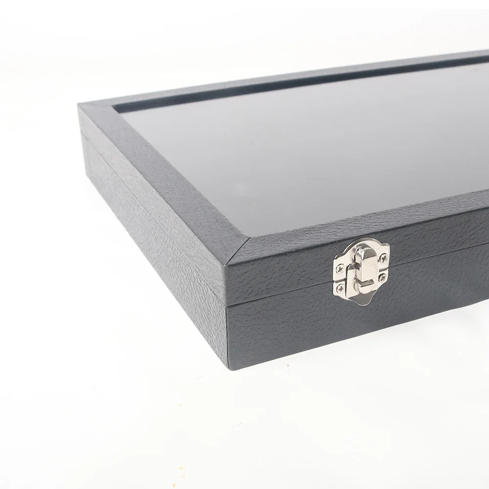 Hard Balck PU Jewelry Box With Glass Cover Storage Ring Earring Bracelet Necklace Display Organizer Storage Case Box