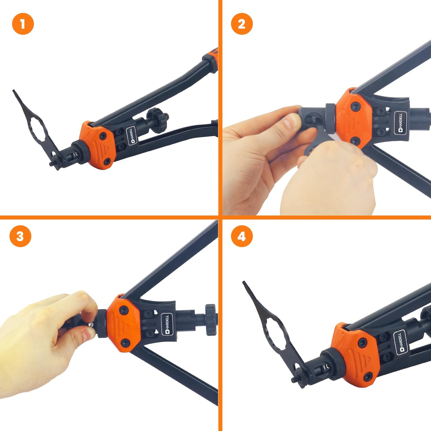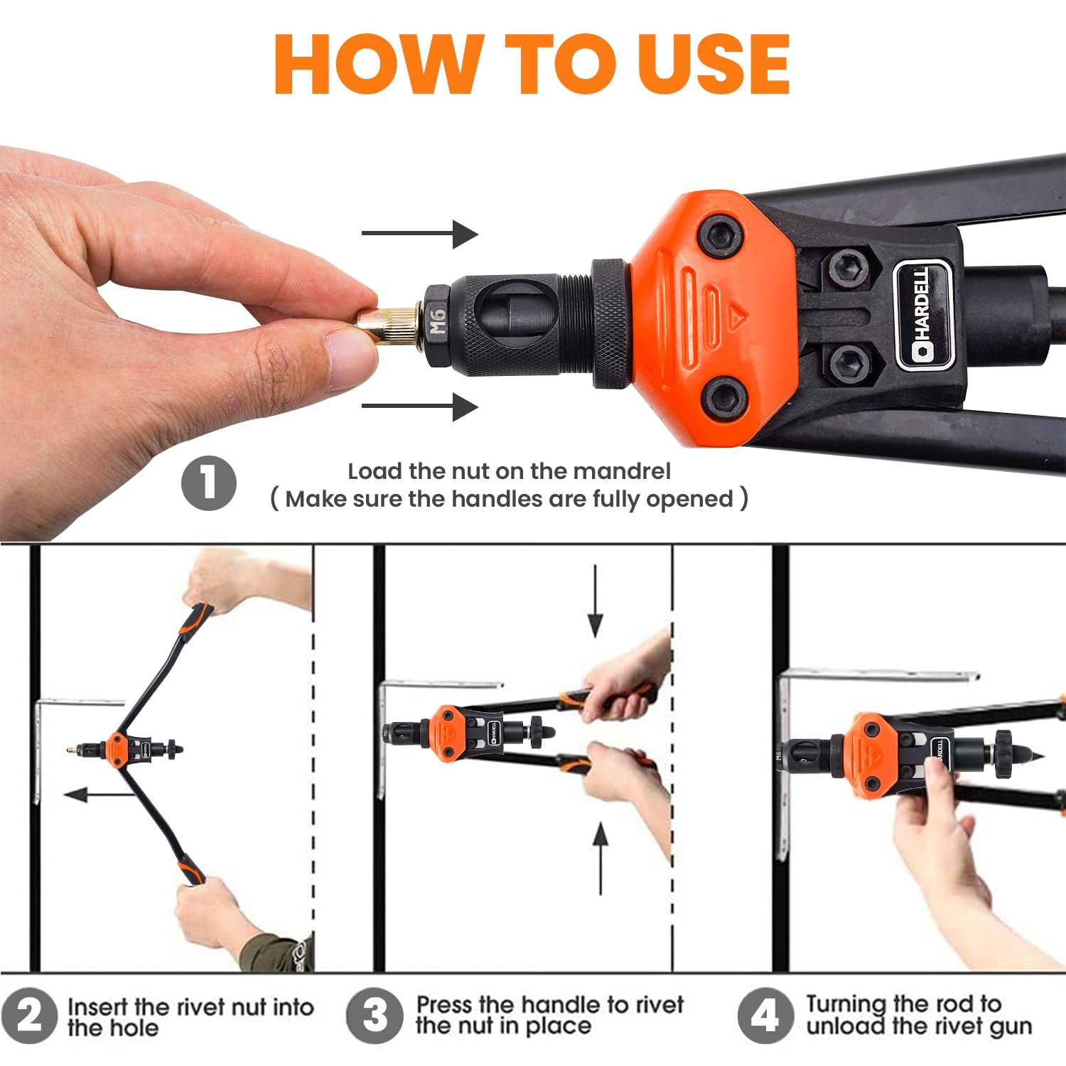 【Easy Riveting】Unique design and thoughtful instruction manual allow for easy changing of mandrels of rivet nut gun kit by hand.
