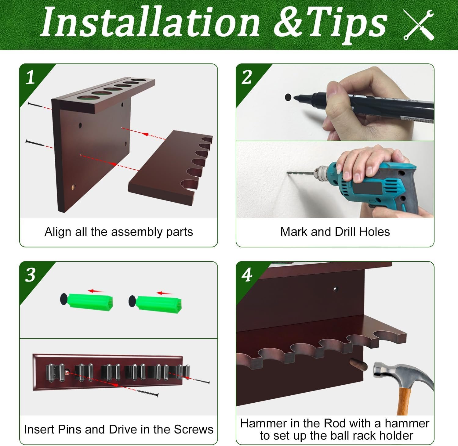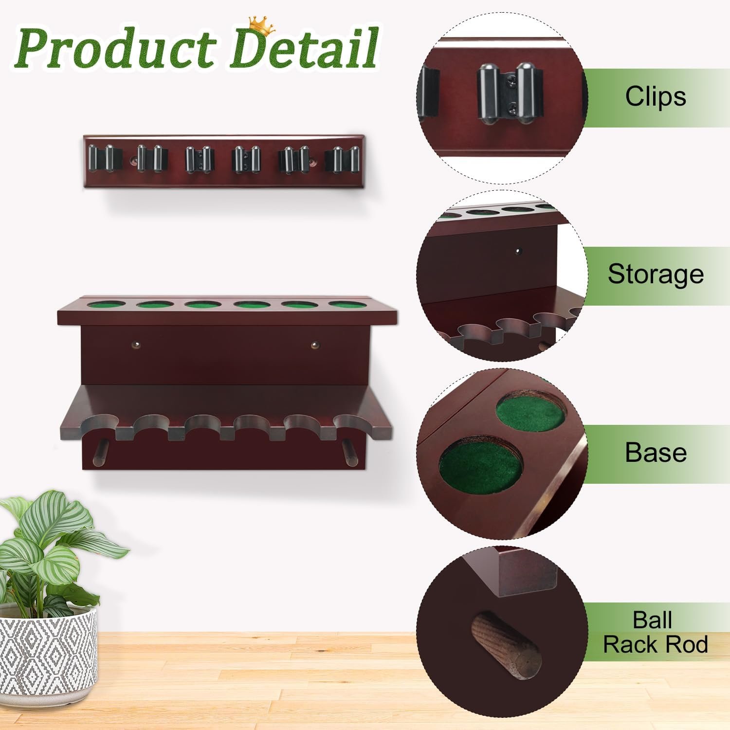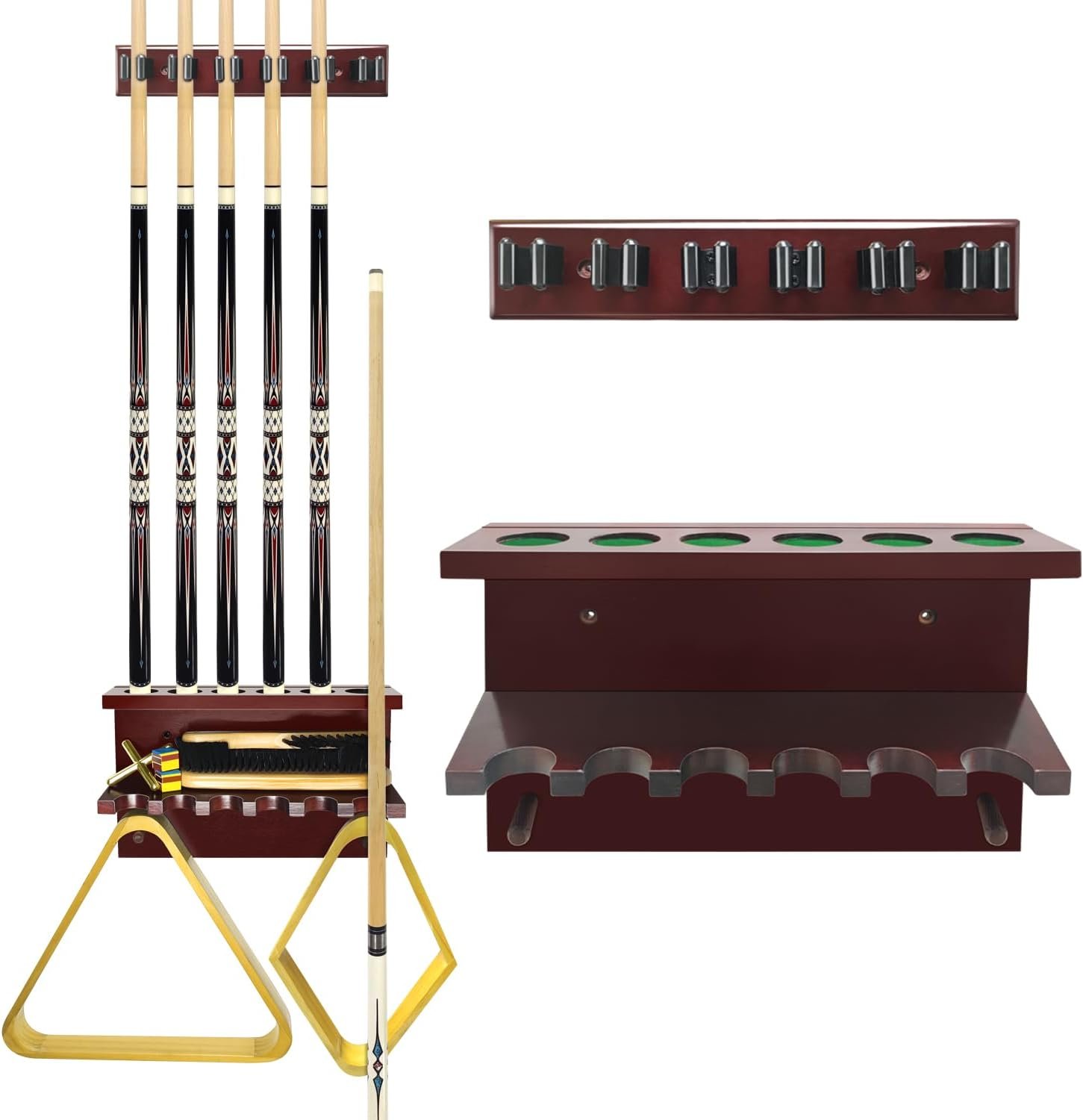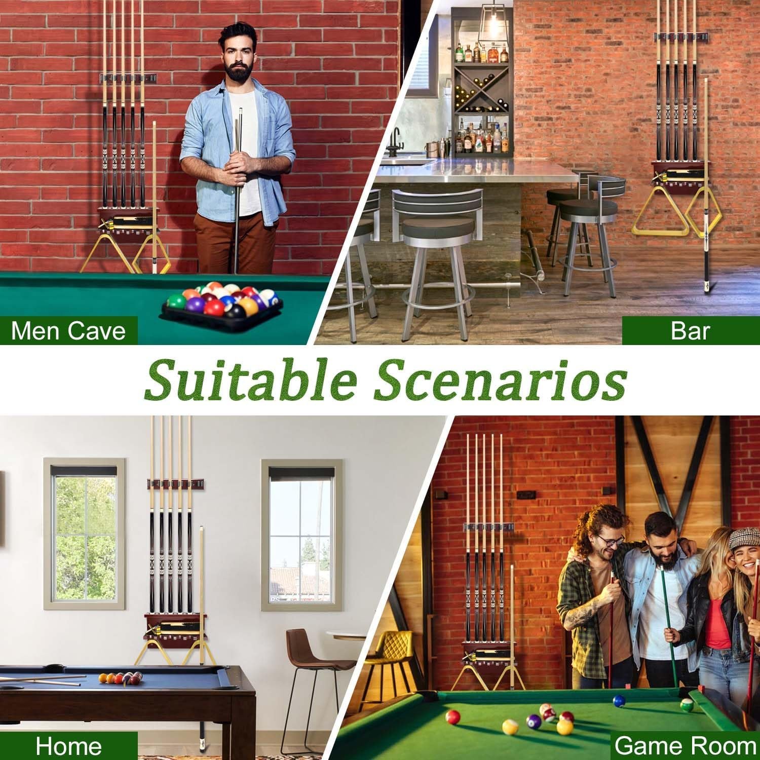 【 Premium Quality & Space-Saving】The pool cue holder made of hardwood, it is wall mount is sturdy to support all pool table accessories securely. our sleek pool cue rack maximizes space utilization, making it suitable for any room size.