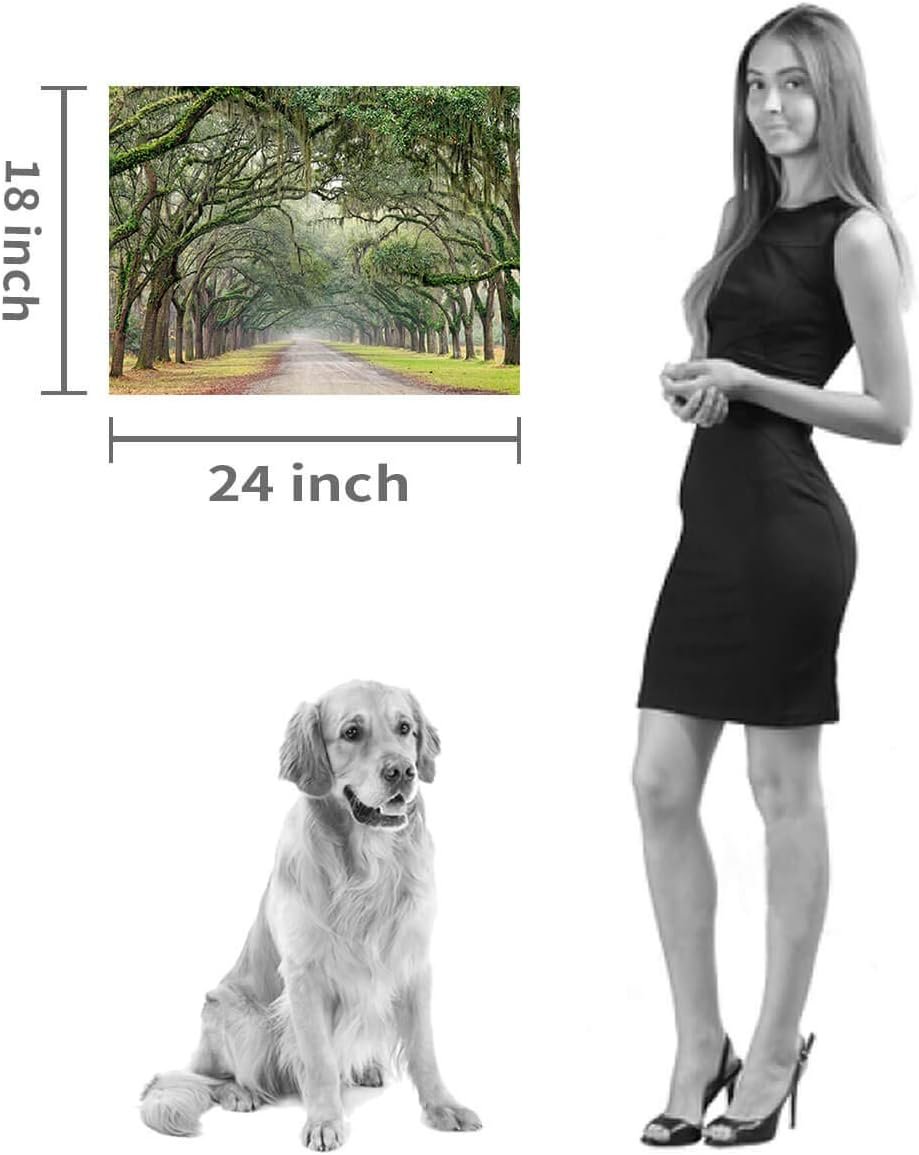 Hardy Gallery Landscape Artwork Pictures Canvas Prints: Spanish Moss Covered Green Oak Trees on Forest Path in Fall Photographic Image for Wall Arts (24″ x 18″)