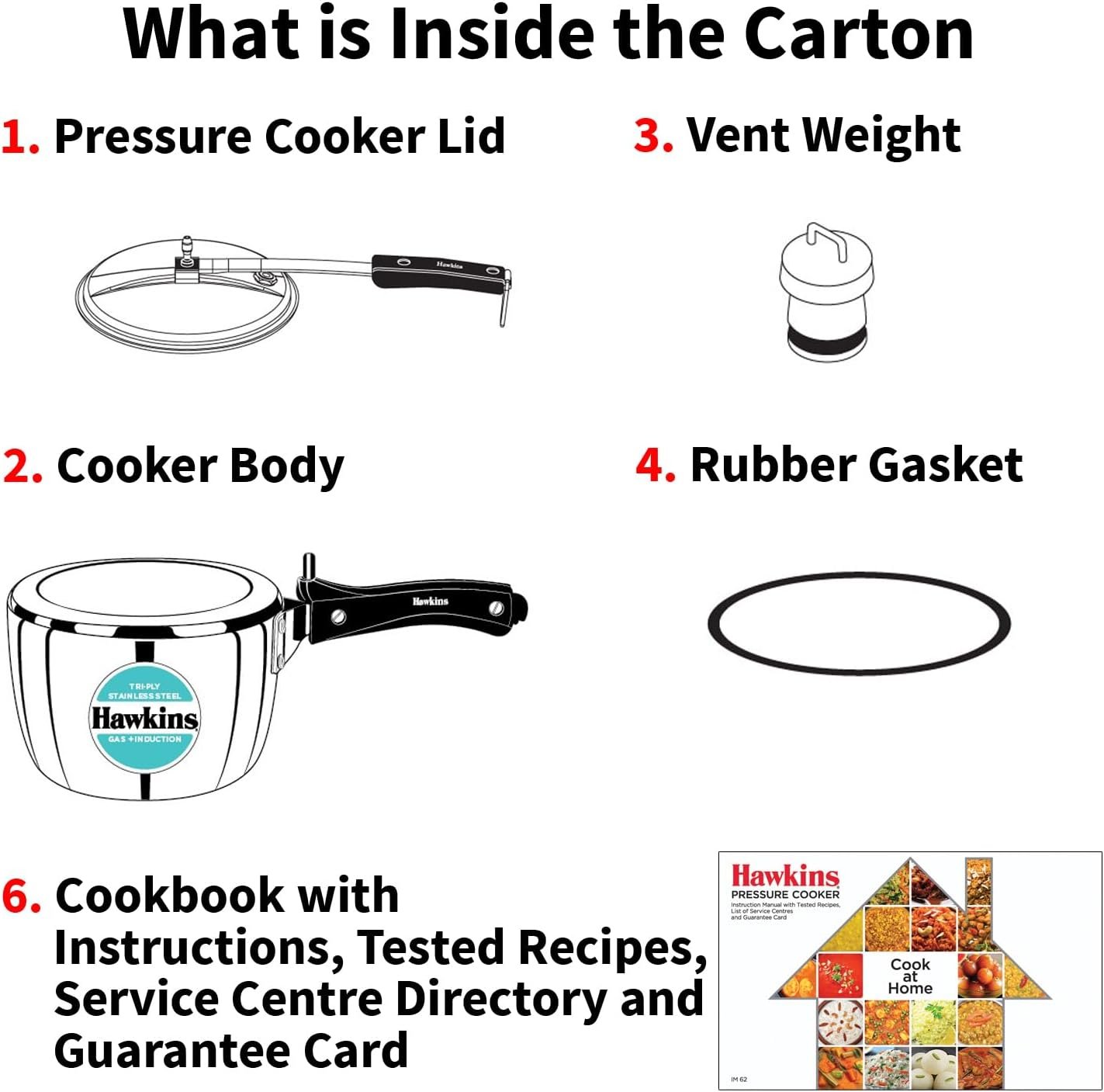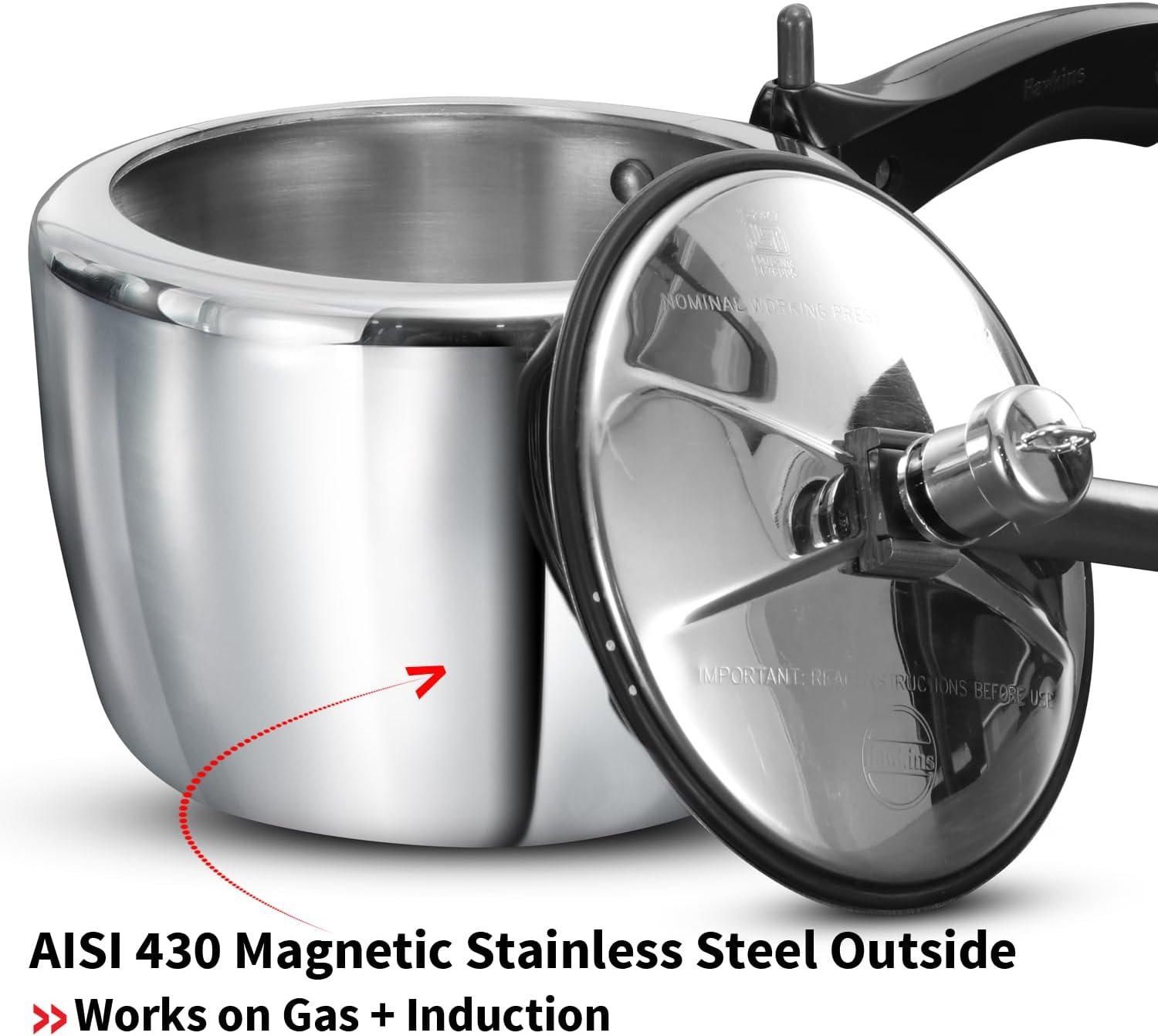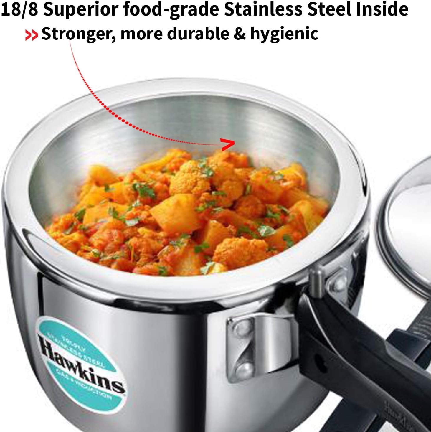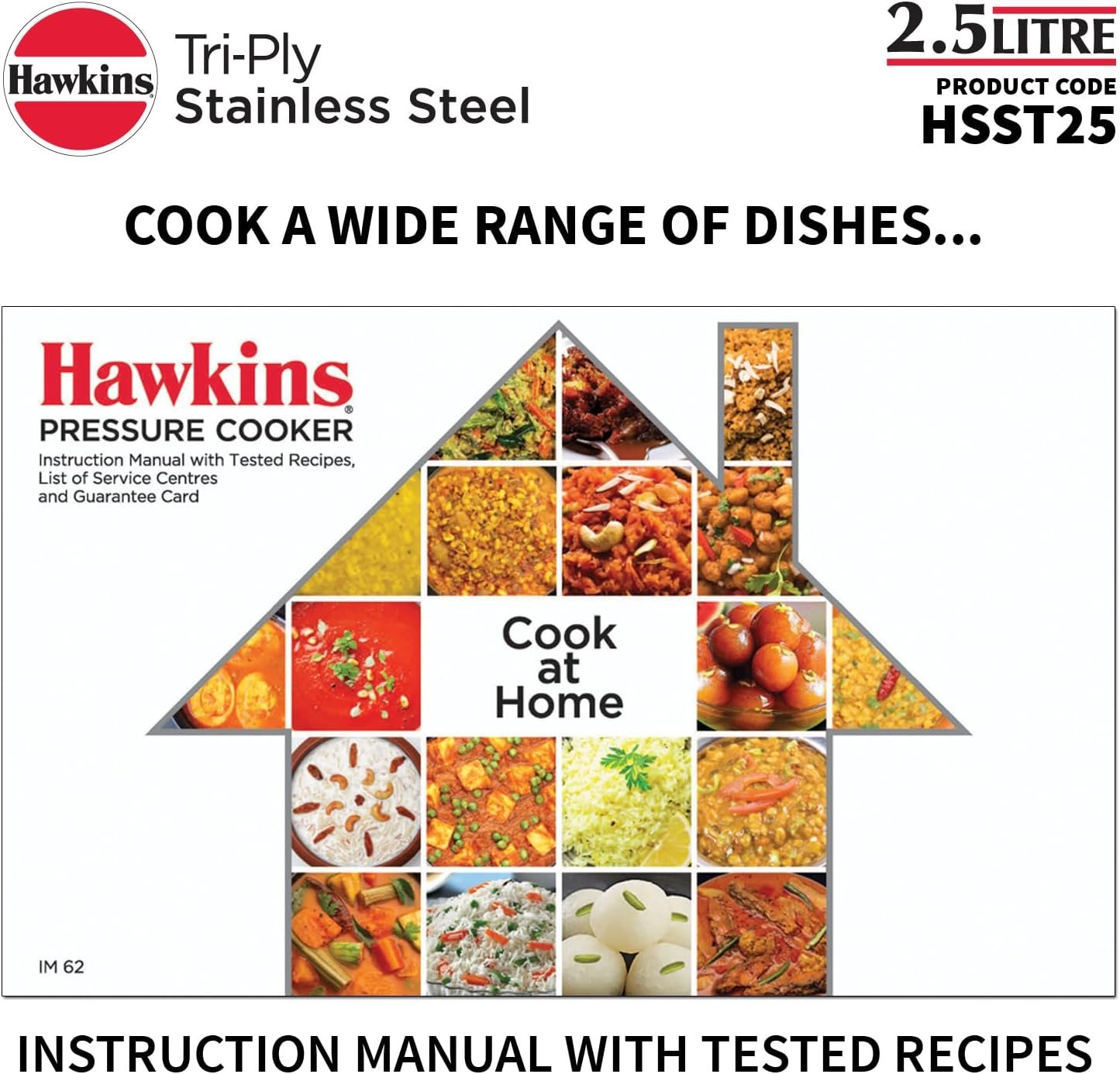Hawkins 2.5 Litre Triply Stainless Steel Pressure Cooker, Inner Lid Cooker, Silver (HSST25)