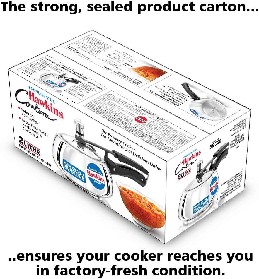 Hawkins 2 Litre Contura Pressure Cooker, Stainless Steel Inner Lid Cooker, Handi Cooker, Induction Cooker, Small Cooker, Silver (SSC20)