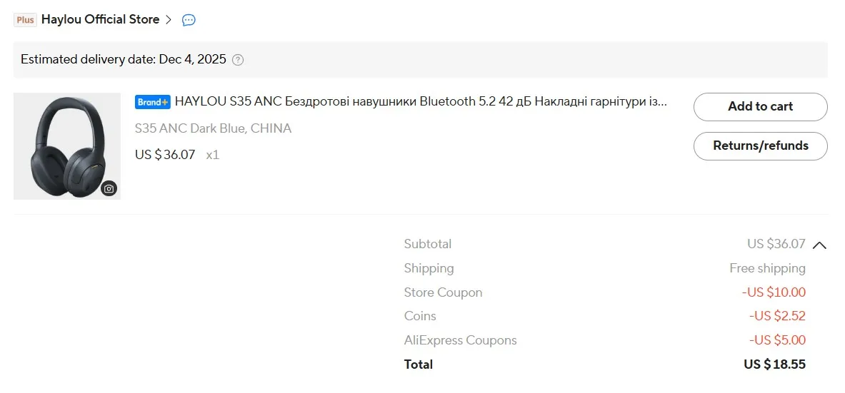 Very fast delivery and shipping via Ukrposhta. The headphones are very cool considering the price. The sound is great, the bass and treble are separated. They charge quickly and hold a charge for a long time. They connect instantly. Added a screenshot of the purchase to show the actual discount. For those who also want to save money, a small riddle: the name of a massive predator, dark green in color, with a big tail and teeth like a blade, living in warm fresh rivers, lakes, and swamps, striking suddenly and quickly turning its prey. This name is entered in Ukrainian in the search for Pavlo Durov’s application. There you will find what you need 😉