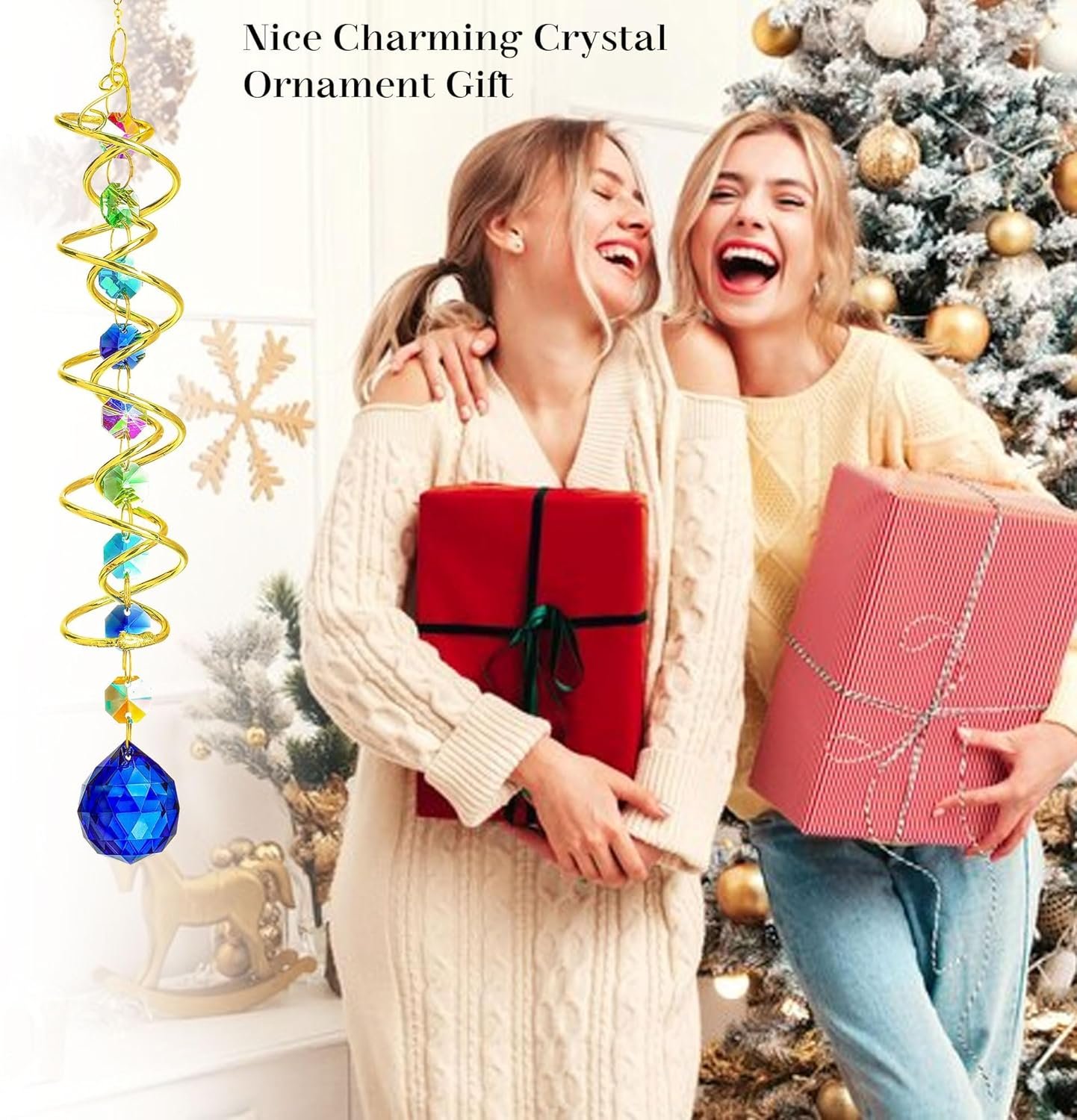 H&D HYALINE & DORA Gazing Ball Spiral Tail Crystal Suncatcher, Rainbow Maker Crystal Beads Decor Sun Catcher Hang with Hook for Window Indoor Outdoor