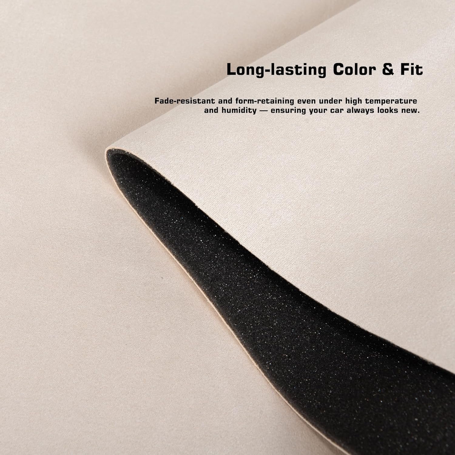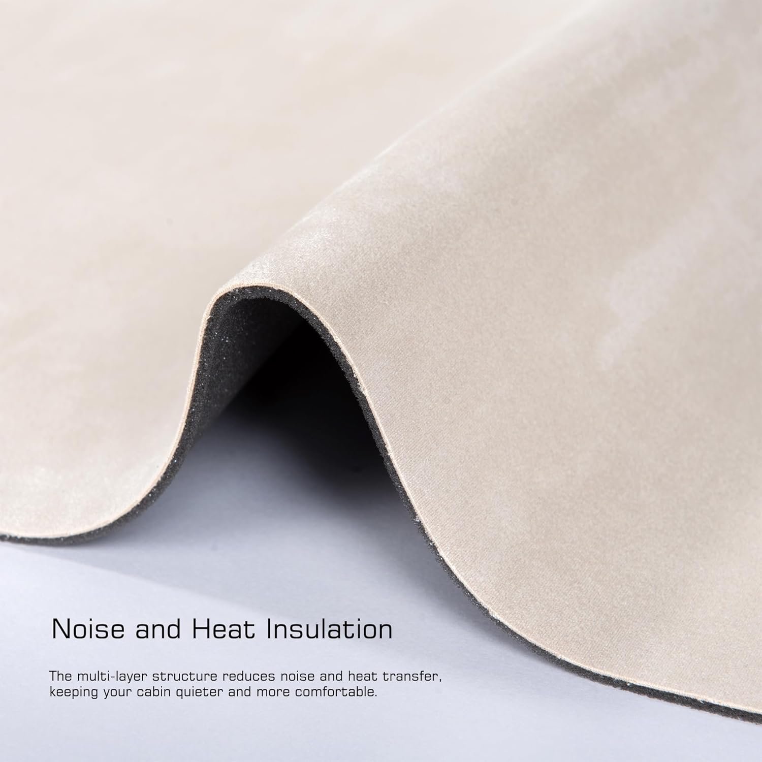 High-density sponge composite layer: The headliner fabric is composed of high-density and high-resiliency sponge composite. The soft sponge texture,combined with Suede fabric, delivers enhanced rebound comfort and superior thermal insulation, soundproofing, and moisture resistance. It remains delamination-free even after prolonged use.