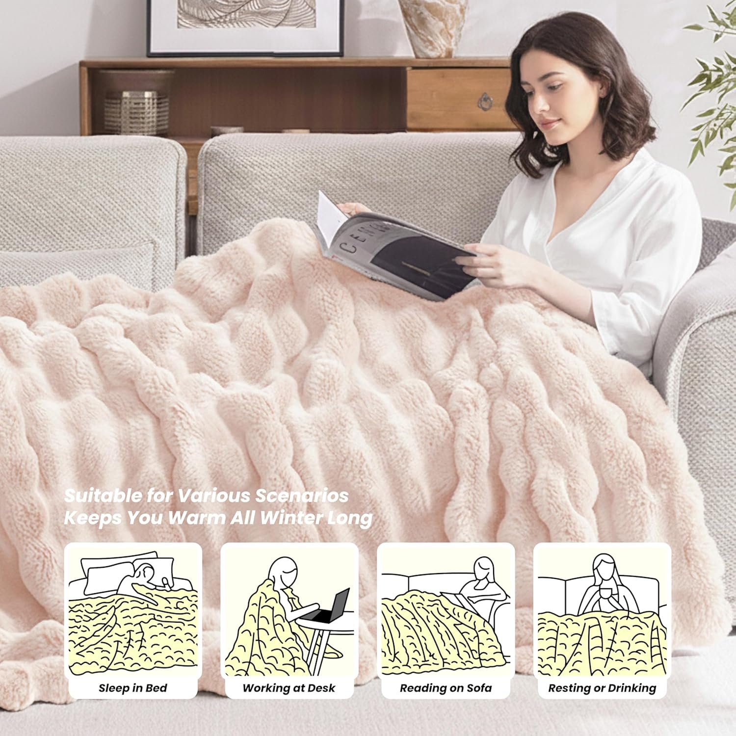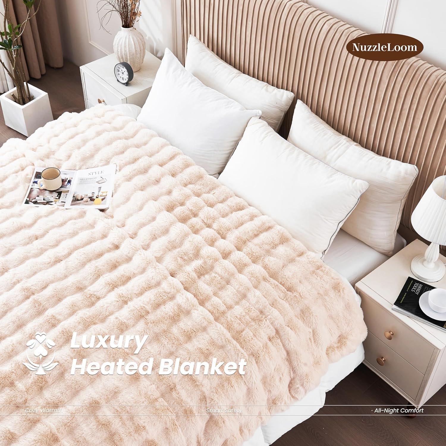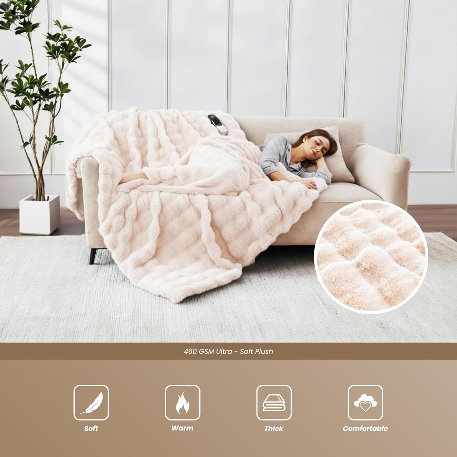 Heated Blanket Throw 50”x60”, Fast Heating Electric Blanket Ultra-Soft Faux Rabbit Fur with 5 Heat Levels & 5H Auto Shut-Off, Overheat Protection, Machine Washable