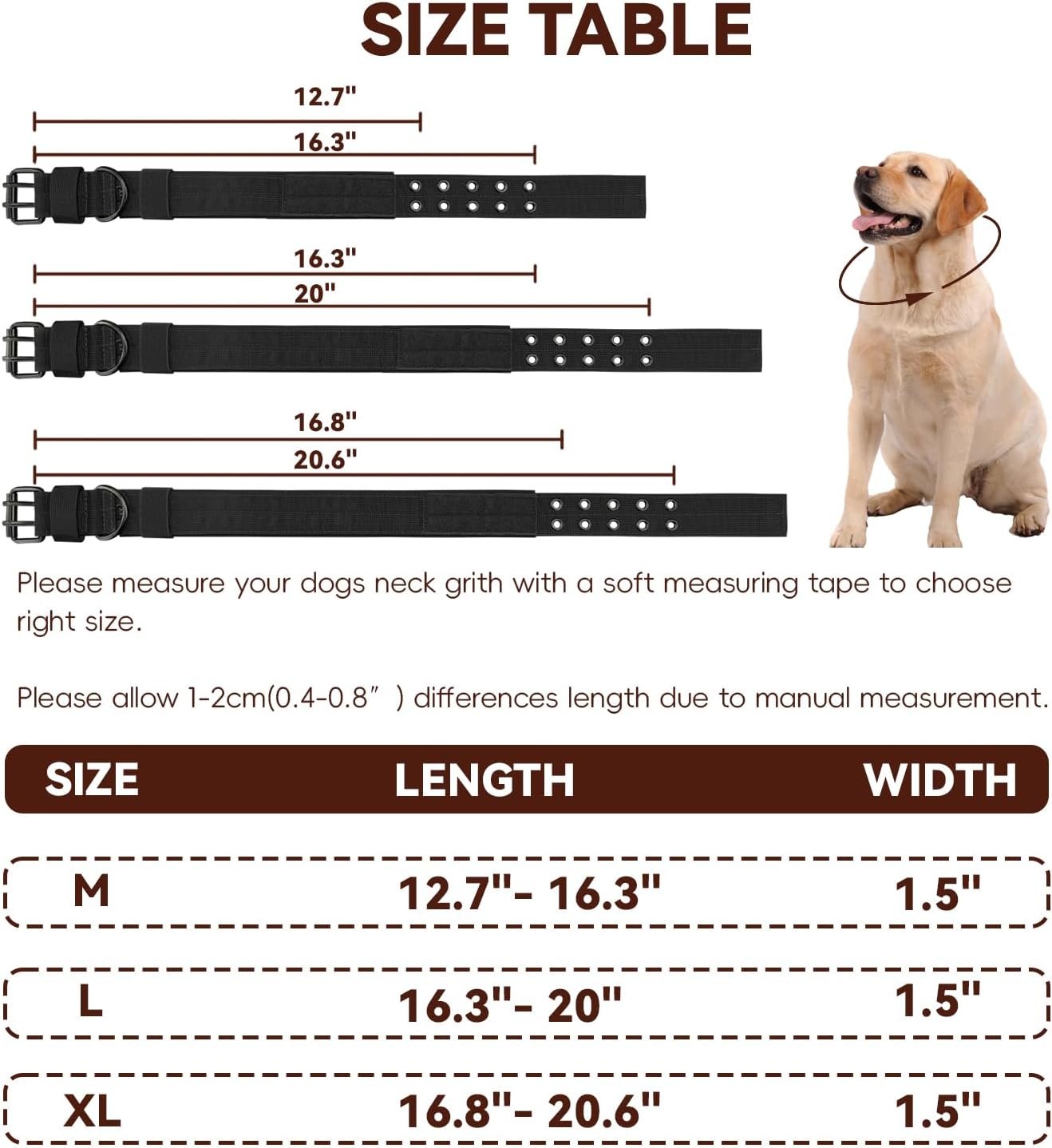 Heavy Duty Dog Collar for Large Dogs, Tactical Dog Collars with Metal Buckle & D Ring, 1.5″ Width Thick Adjustable Nylon Collar for Medium Dogs, Black/L