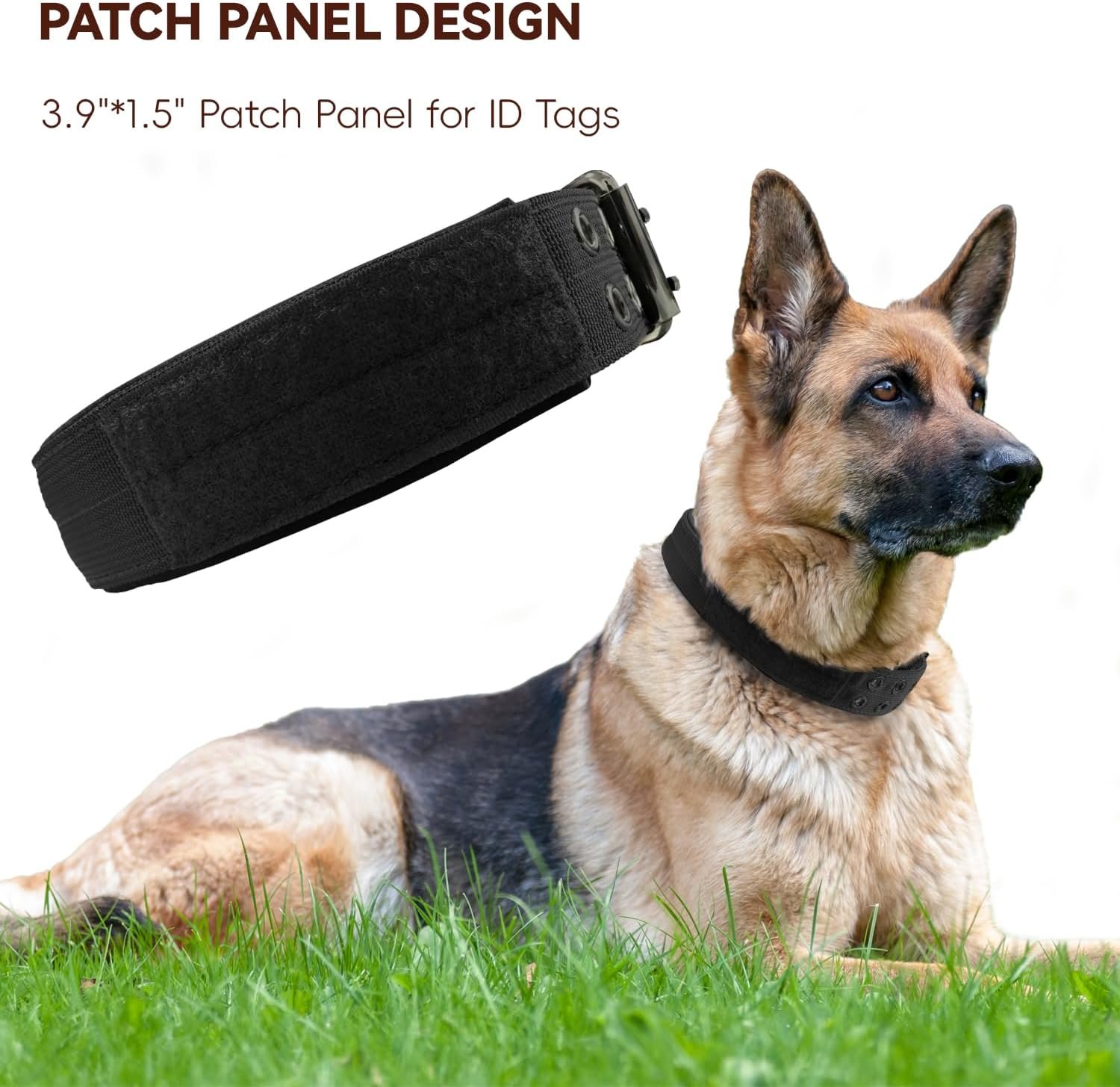 Magic Sticker Panel Design: The tactical dog collar is designed with magic sticker panels for ID tags, training patches, badges or other accessories with hook and loop fasteners.