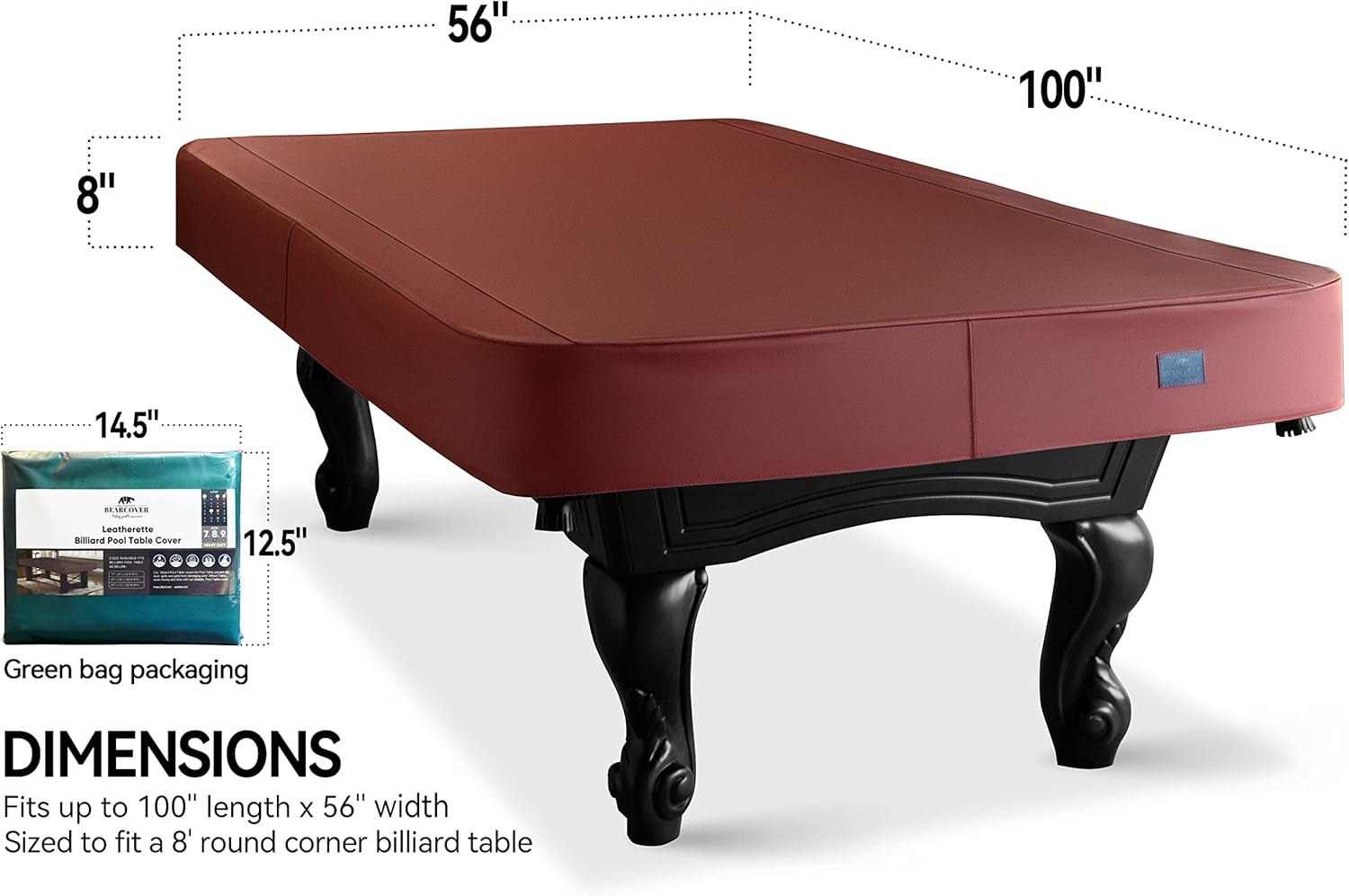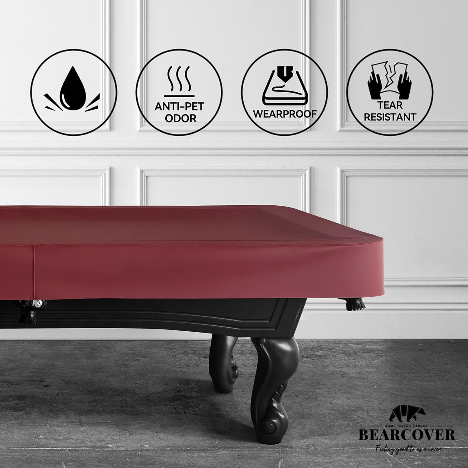 Heavy Duty Leatherette Billiard Pool Table Cover, Waterproof & Tearproof Cover for Pool Table 7/8/9FT (10 Colors Available) (8 Feet/Bordeaux red)