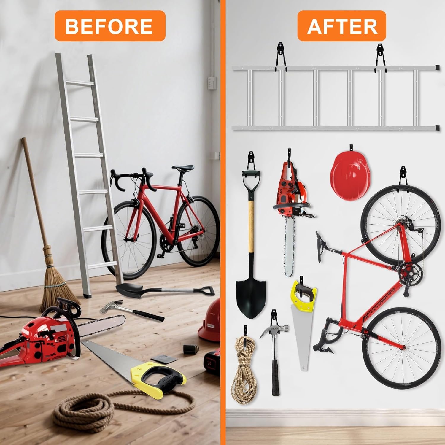 MULTIPLE USE AREAS: Perfect for garage, basement, workshop, warehouse, and shed organization. Ideal for hanging yard tools, garden equipment, ladders, and extension cords