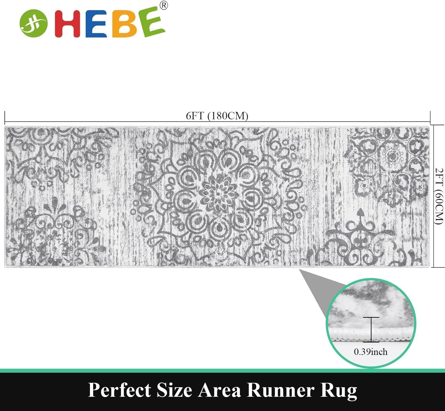 HEBE Hallway Runner Rug 2’x6′ Washable Vintage Distressed Area Rugs Non Slip Laundry Rug Runner Boho Floor Carpet Runners for Hallways Entryway Laundry Room Kitchen Bathroom