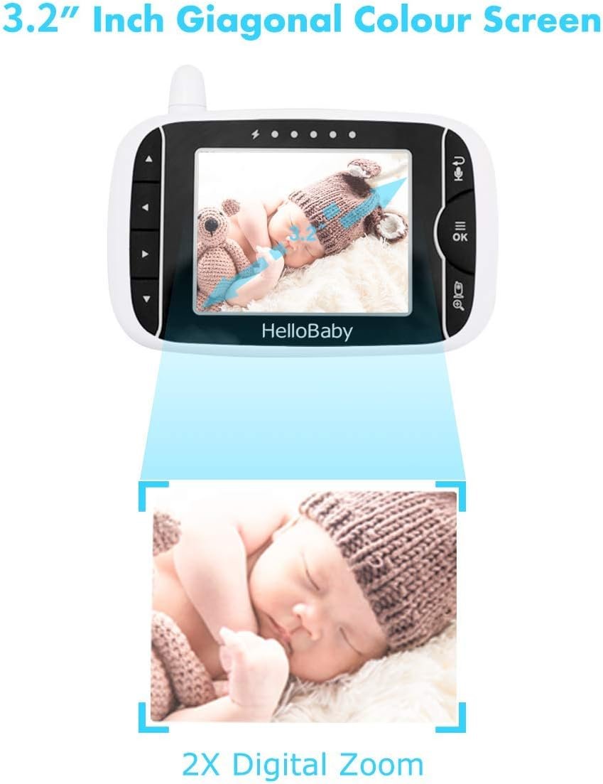 HelloBaby Baby Monitor with Remote Pan-Tilt-Zoom Camera and 3.2” LCD Screen, Infrared Night Vision (Black)