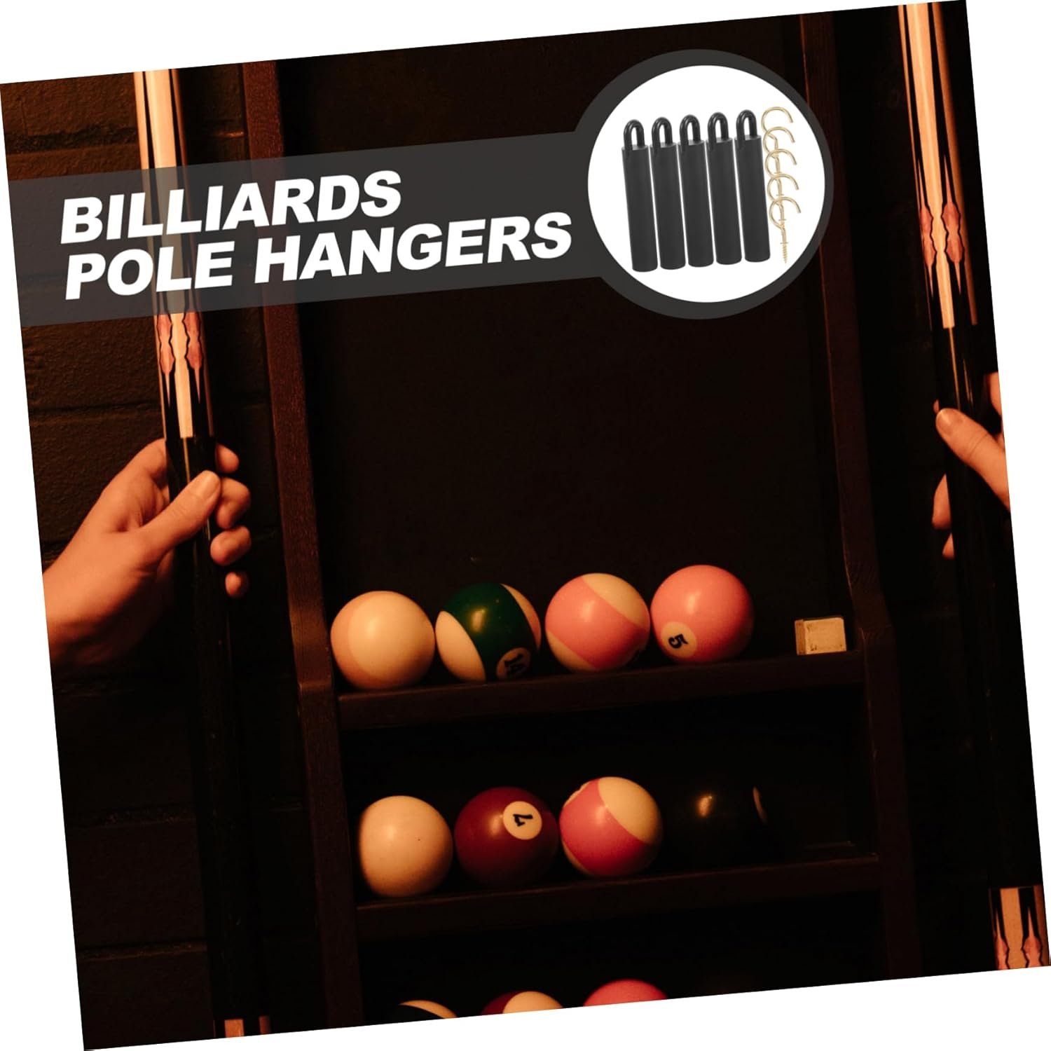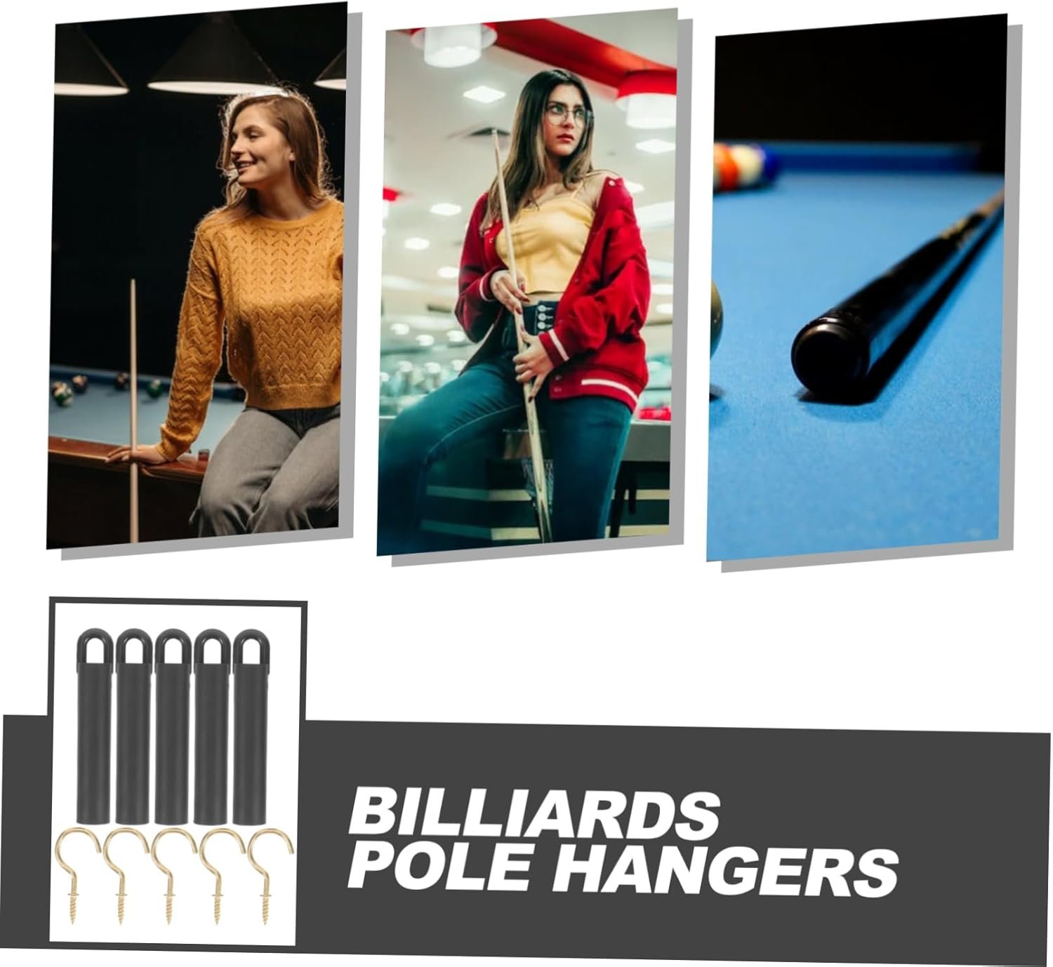 Easy installation: comes with hook screws for quick and effortless setup, no additional tools required,billiard supplies,billiards pool stick holder