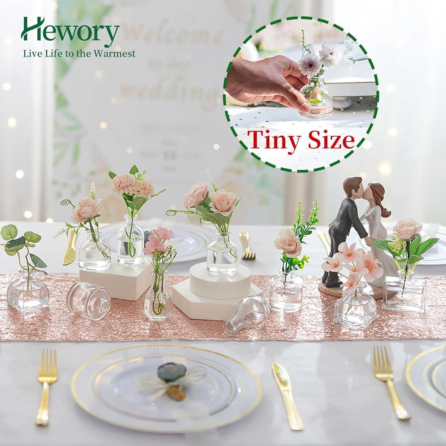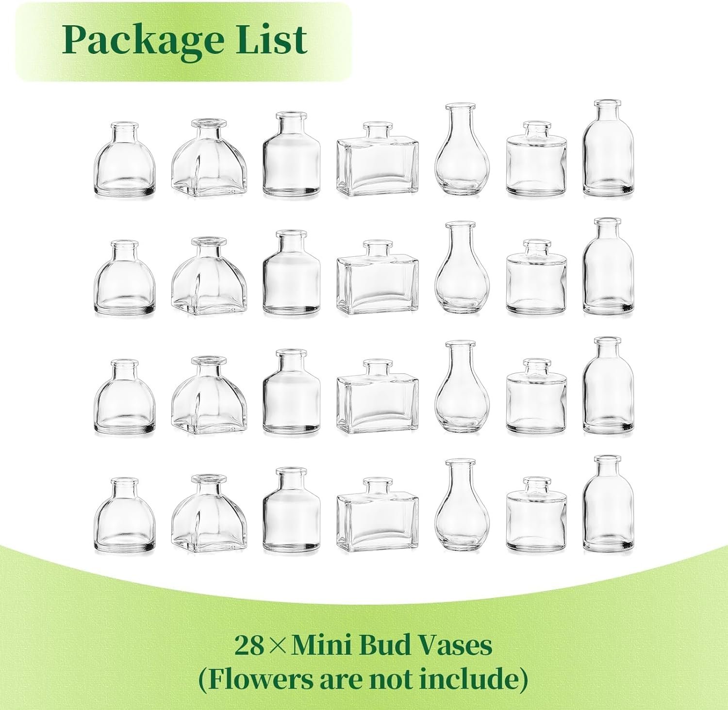 Minimalist Mini Vases for Events: 28 pcs bud vases in bulk are cost-effective, a perfect table centerpiece decoration for wedding reception, baby shower, parties, rehearsal dinner, celebrations, holiday meals. The single flower vase can also be used as flower bar for bridal shower.