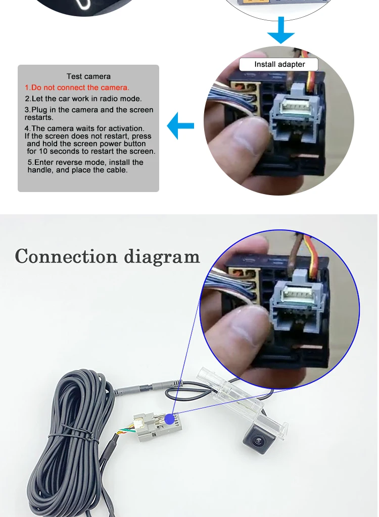 Note: Please make sure the camera is tested before installation.