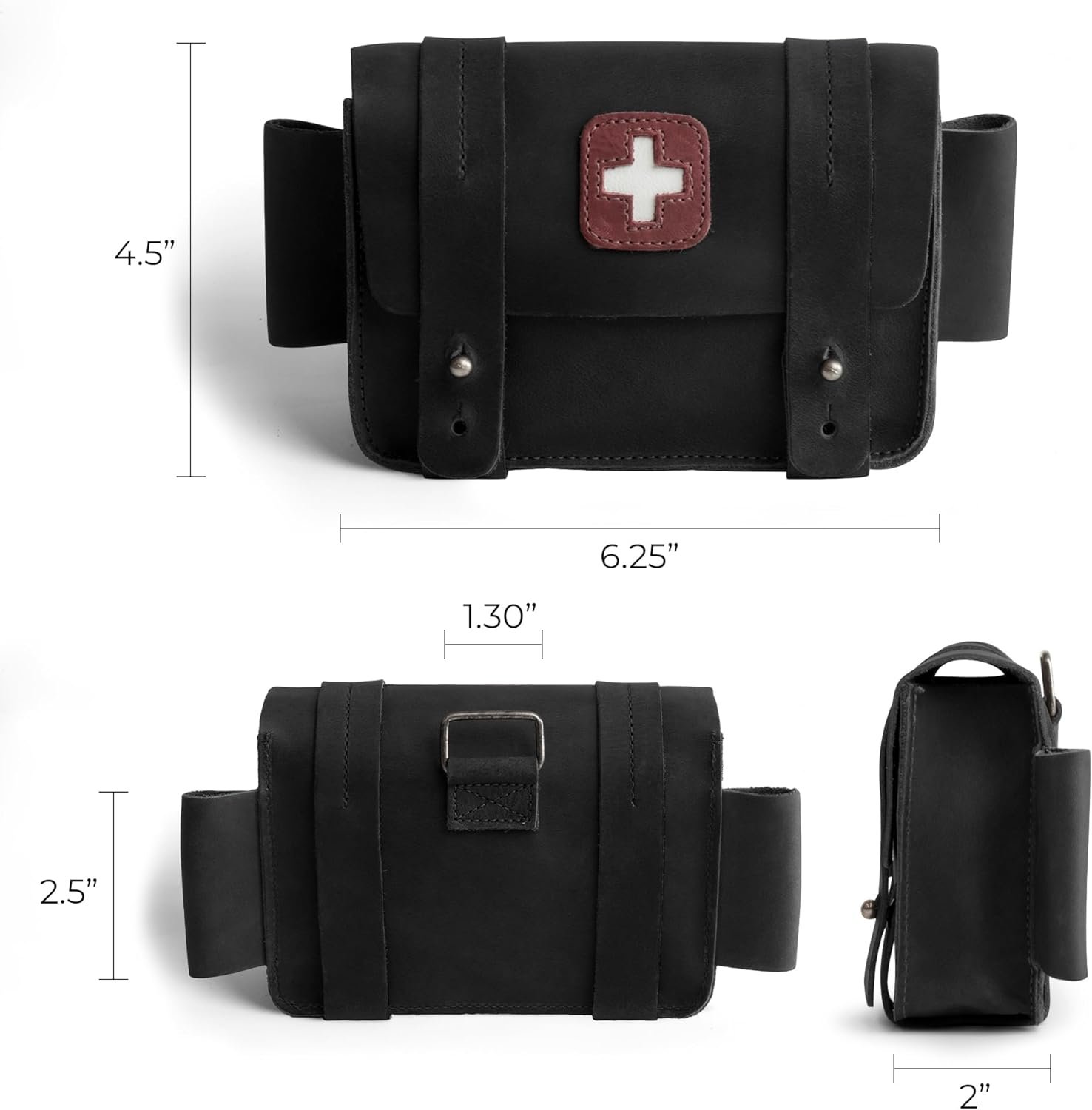STYLISH SAFETY: Handmade from premium full-grain leather, this empty first-aid bag exudes sophistication and ensures lasting durability. Carry your medical supplies with confidence, knowing the artisanal quality will withstand the test of time and use, turning emergency preparedness into a stylish endeavor that complements your refined taste.